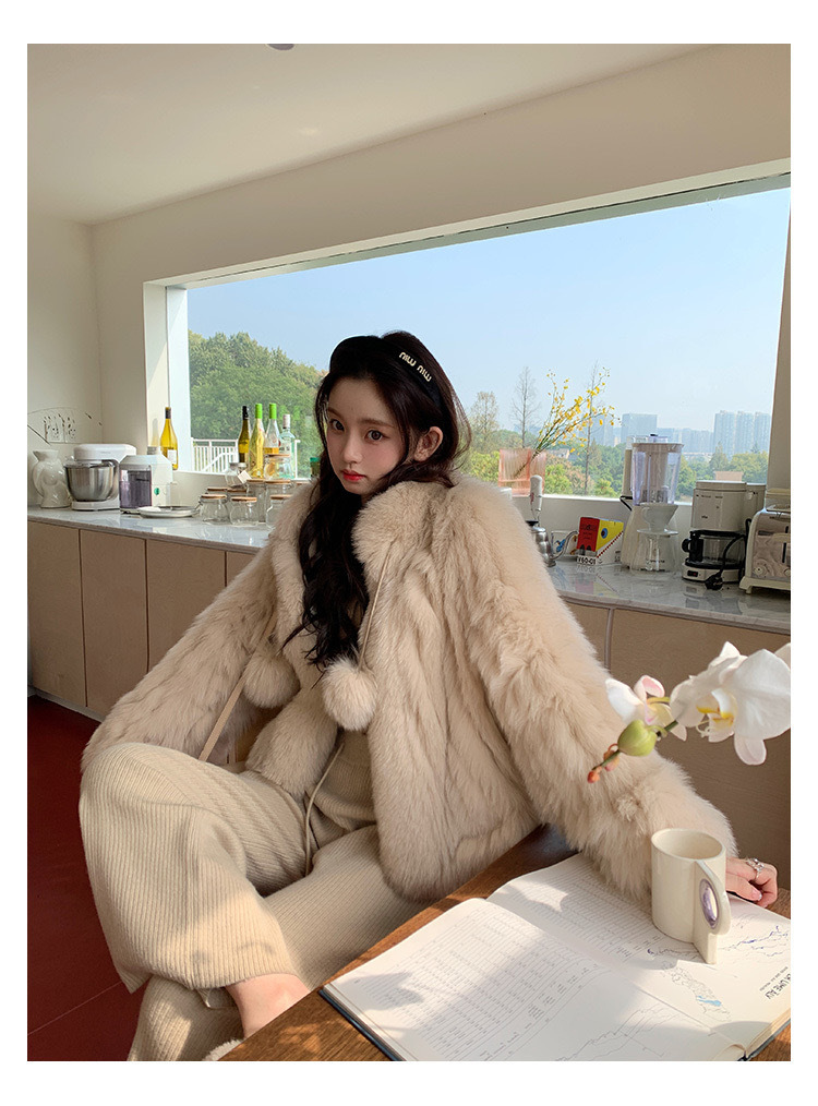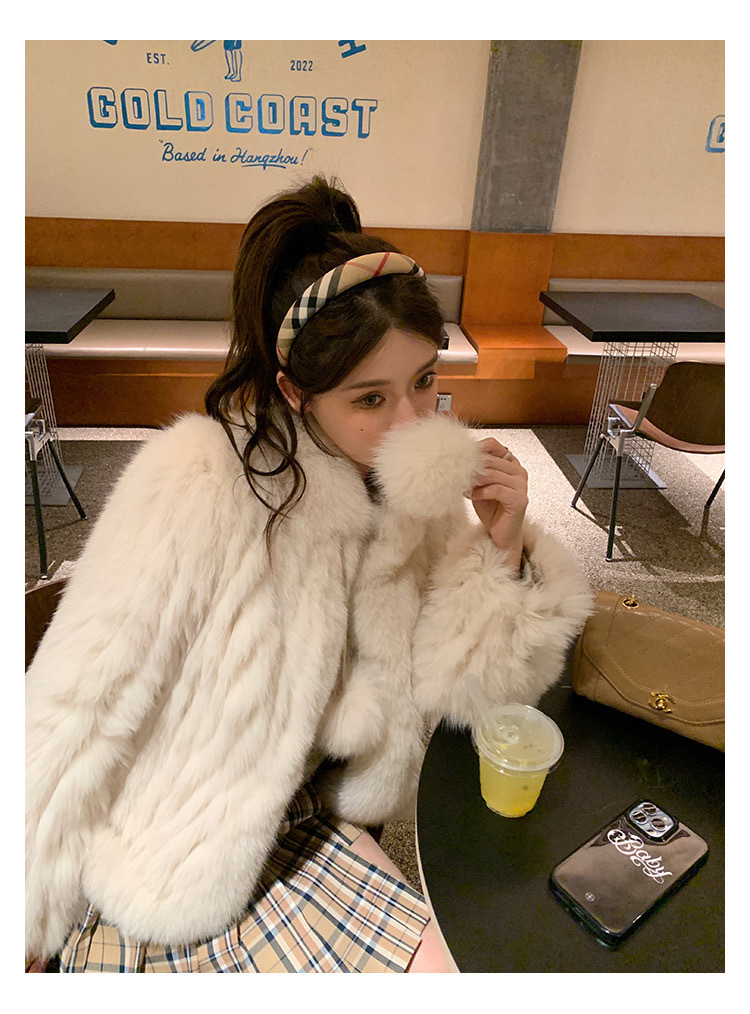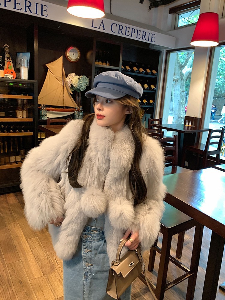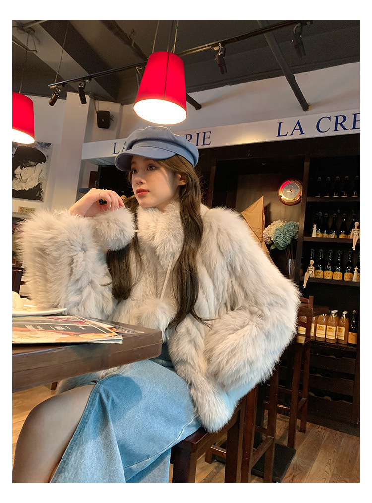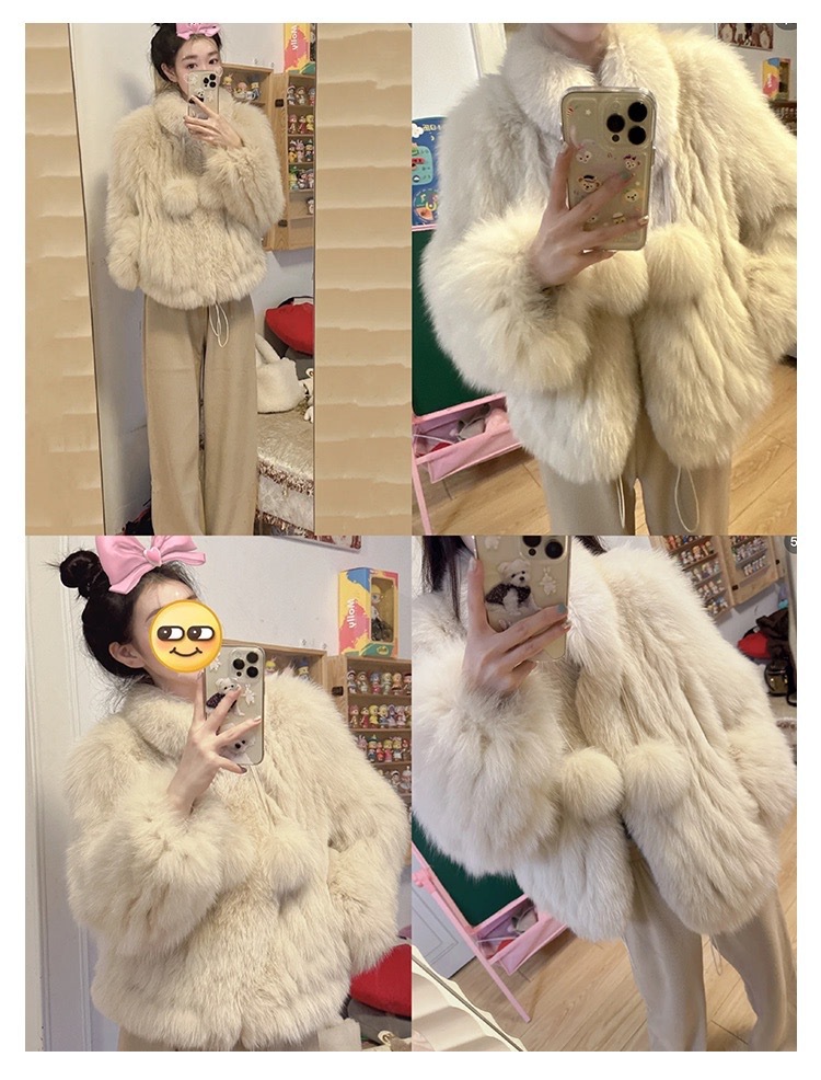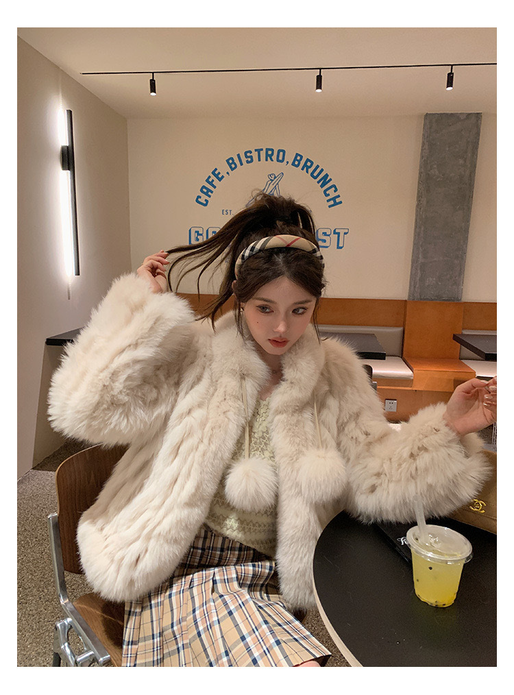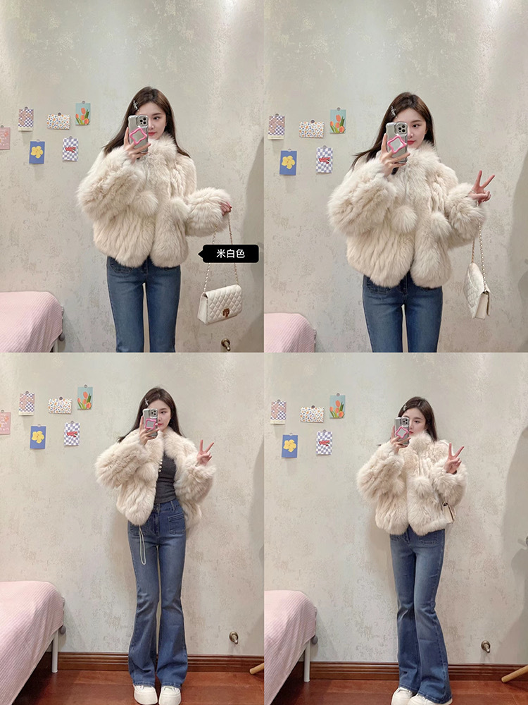 “오타쿠 밀크 볼 2023 겨울 신작 단수입 모조 여우 모피 자동차 모피 코트 여성 영스토어 가기