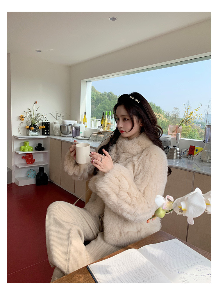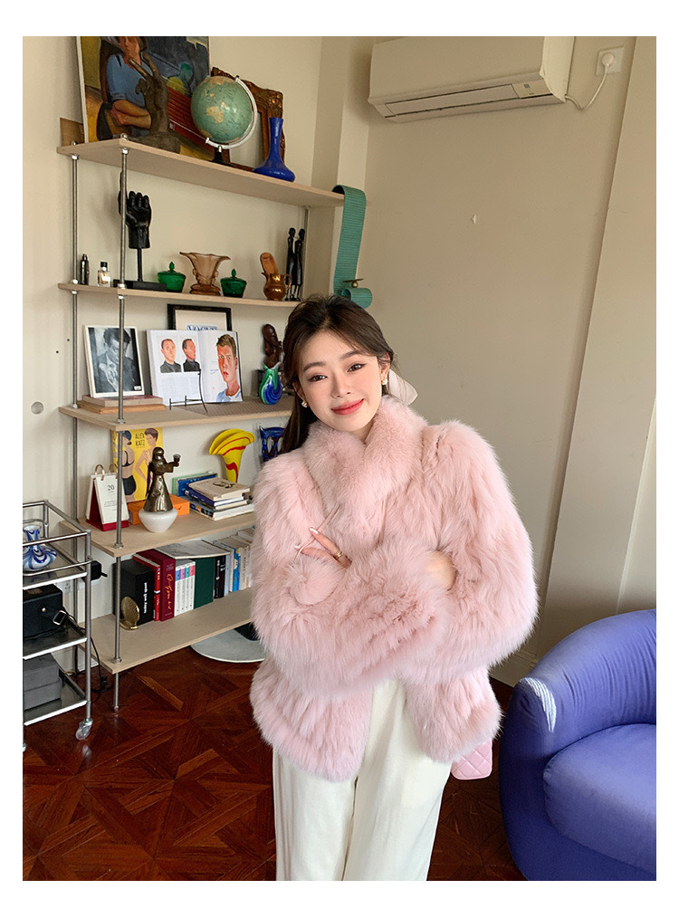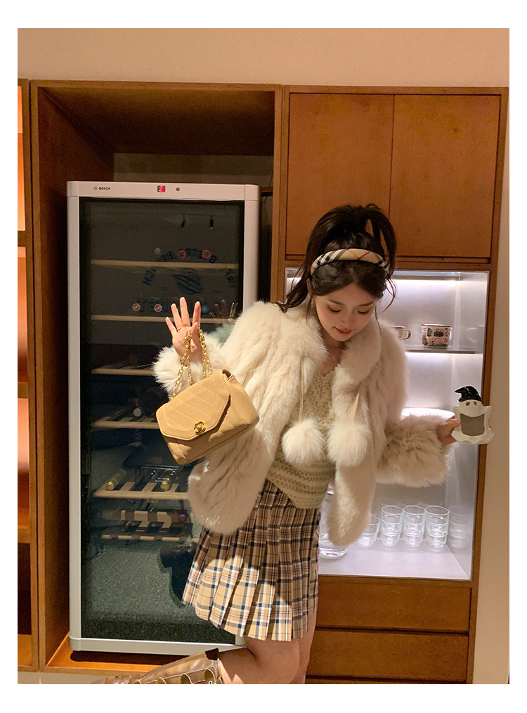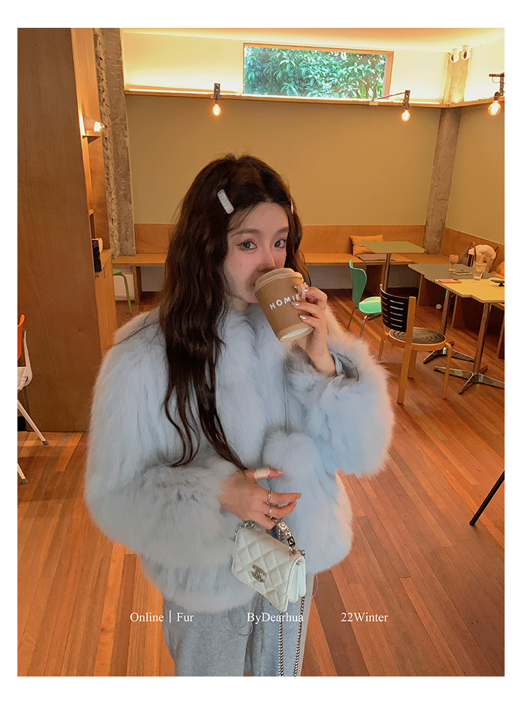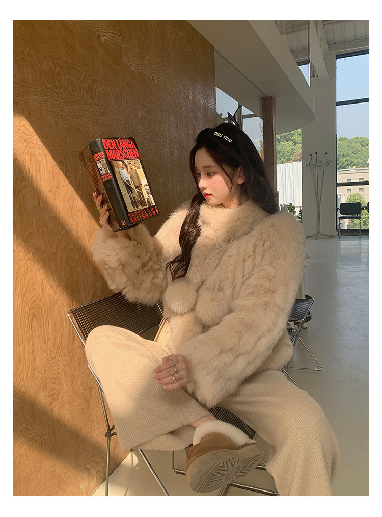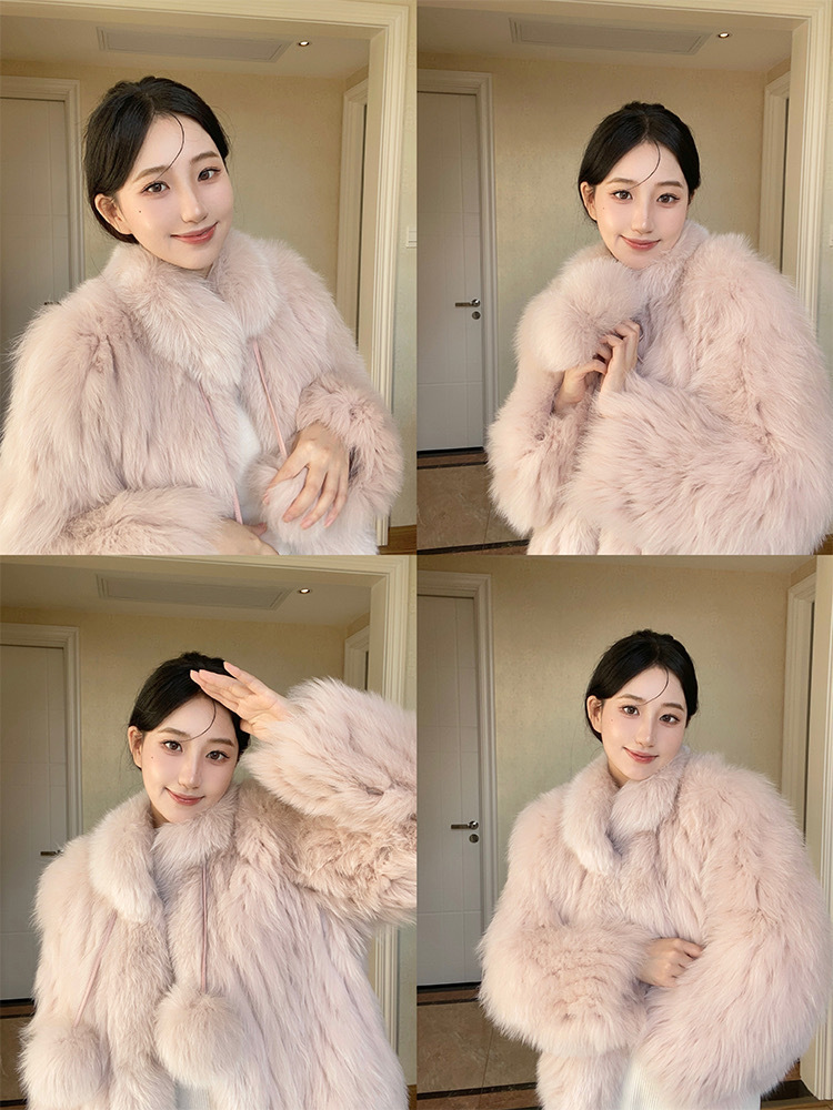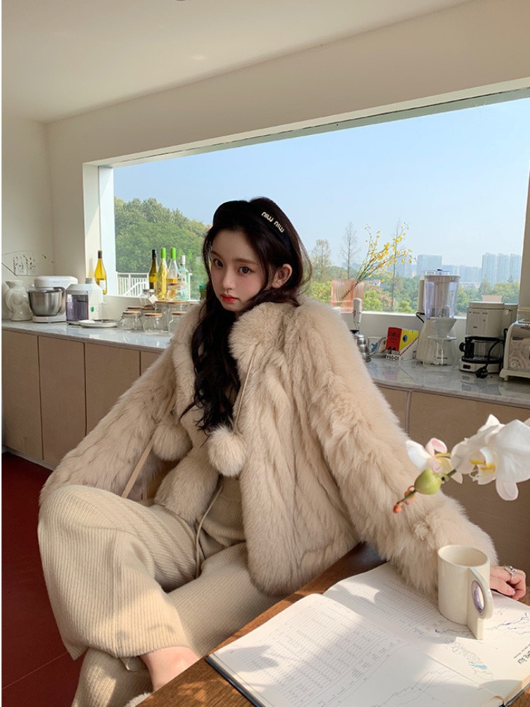 “오타쿠 밀크 볼 2023 겨울 신작 단수입 모조 여우 모피 자동차 모피 코트 여성 영스토어 가기
