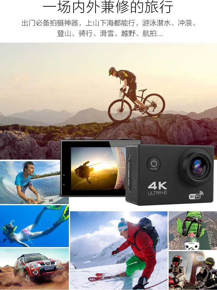 국경 간 뜨거운 판매 스포츠 카메라 야외 사이클링 등반 서핑 방수 WiFi 원격 제어 카메라 휴대용 기록