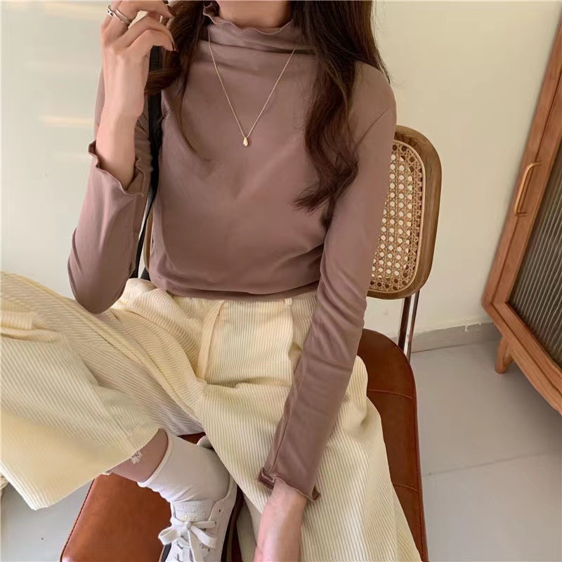 2024 여성 가을, 겨울 새로운 스타일 다목적 슬리밍 내부 및 외부 착용 곰팡이 가장자리 하프 터틀넥 바닥 셔츠 긴 소매 캐주얼 다목적스토어 가기