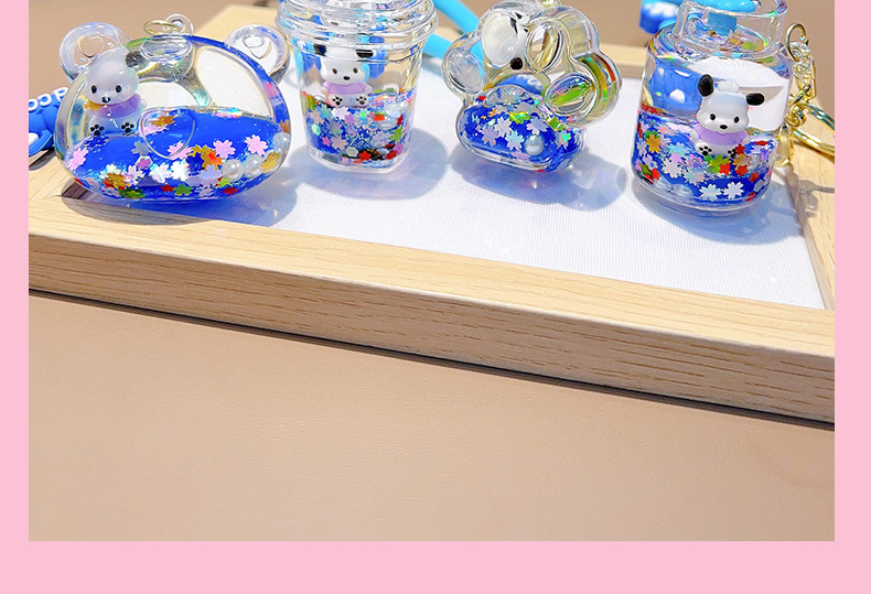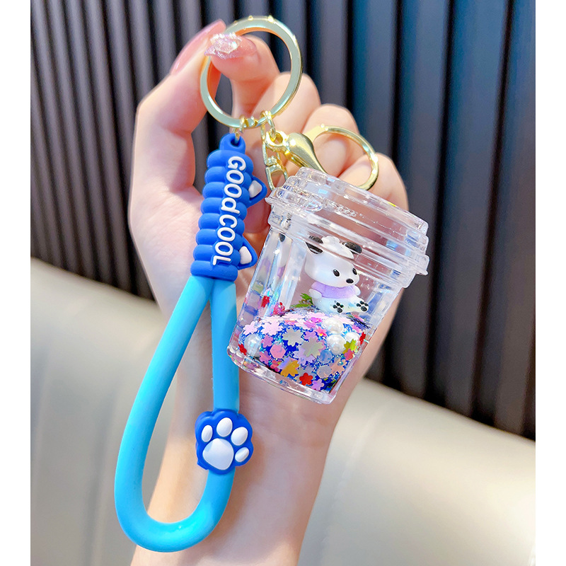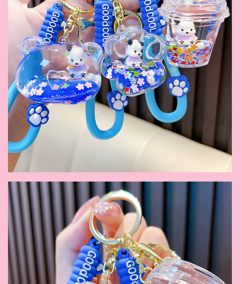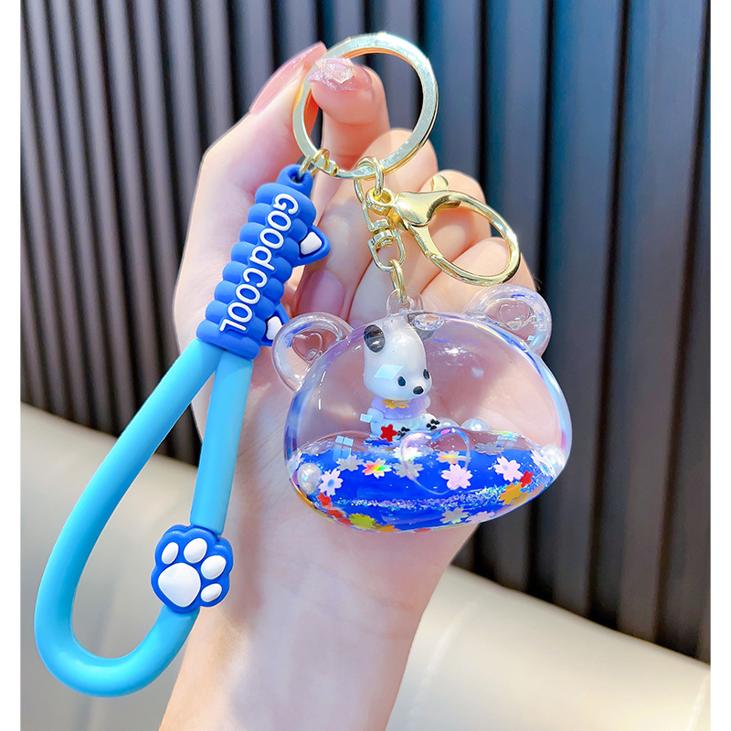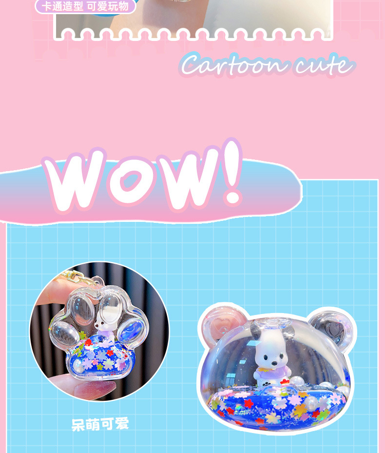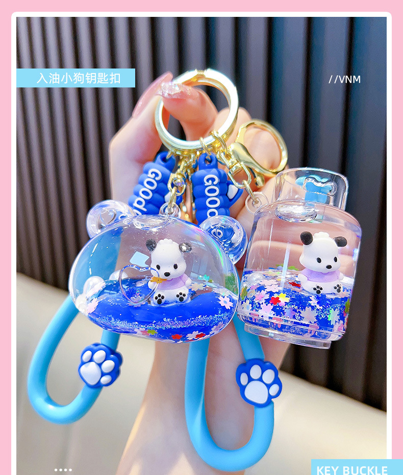 Woan 기름 강아지 곰 발 열쇠 고리 절묘한 귀여운 액체 quicksand 펜던트 책가방 액세서리 작은 선물 도매스토어 가기