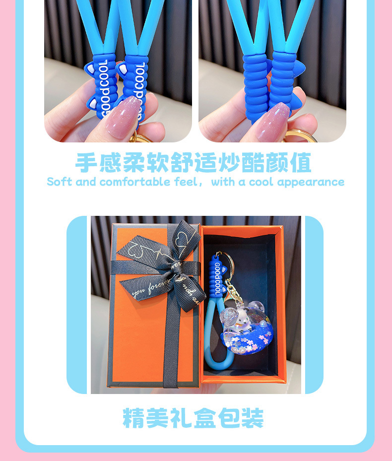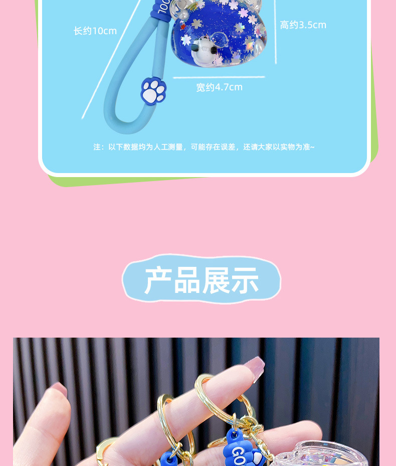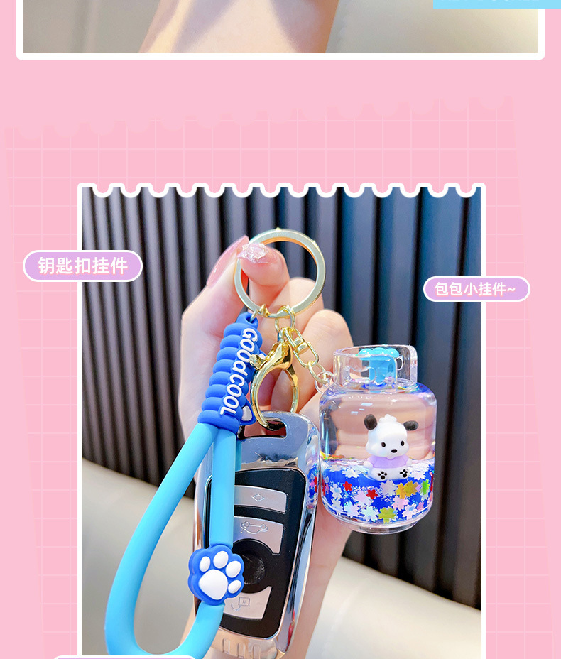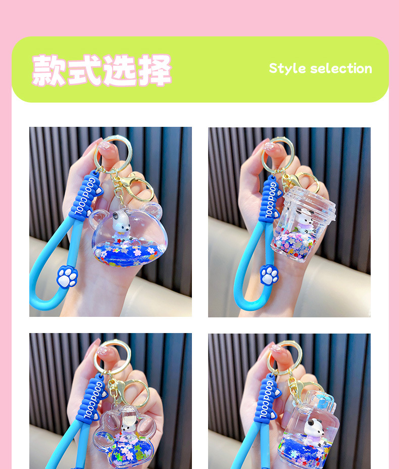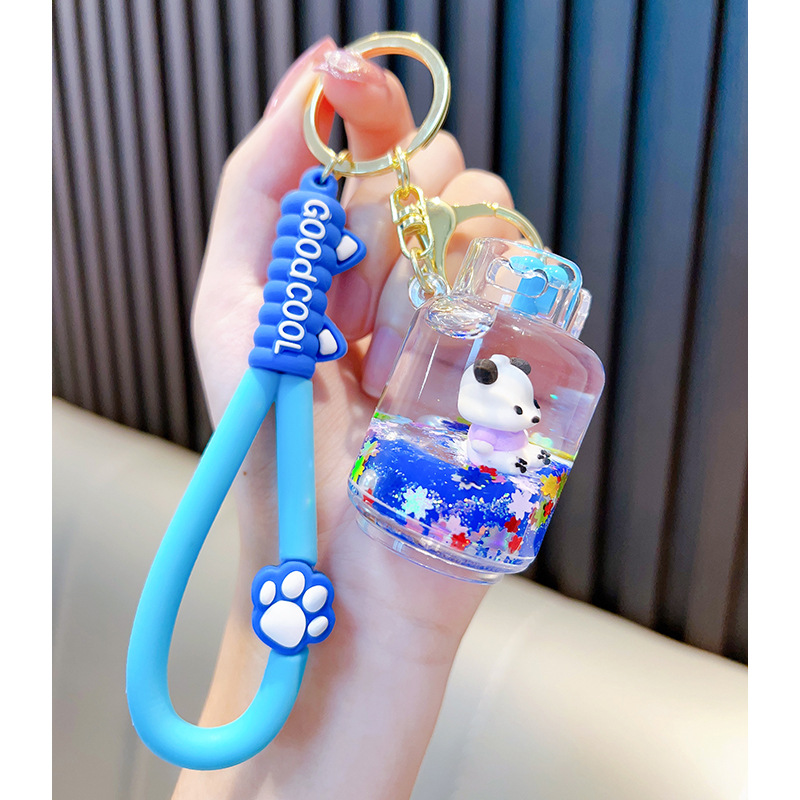 Woan 기름 강아지 곰 발 열쇠 고리 절묘한 귀여운 액체 quicksand 펜던트 책가방 액세서리 작은 선물 도매스토어 가기