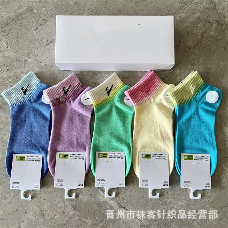Su Wan Nexter 5 쌍 박스형 스포츠 양말 여성용 미디엄 및 쇼트 배럴 체크 사계절 면 양말 컬러 매칭 빈티지 대외 무역스토어 가기