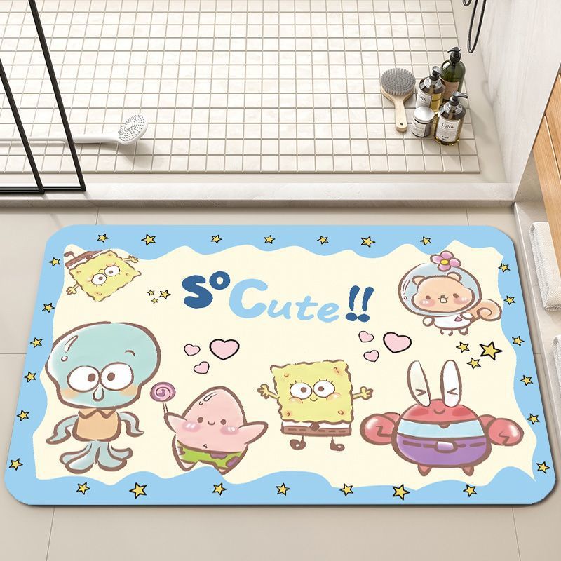 만화 규조 진흙 욕실 바닥 매트 가정용 흡수성 미끄럼 방지 도어 매트 화장실 문 용 빠른 건조 발 매트스토어 가기