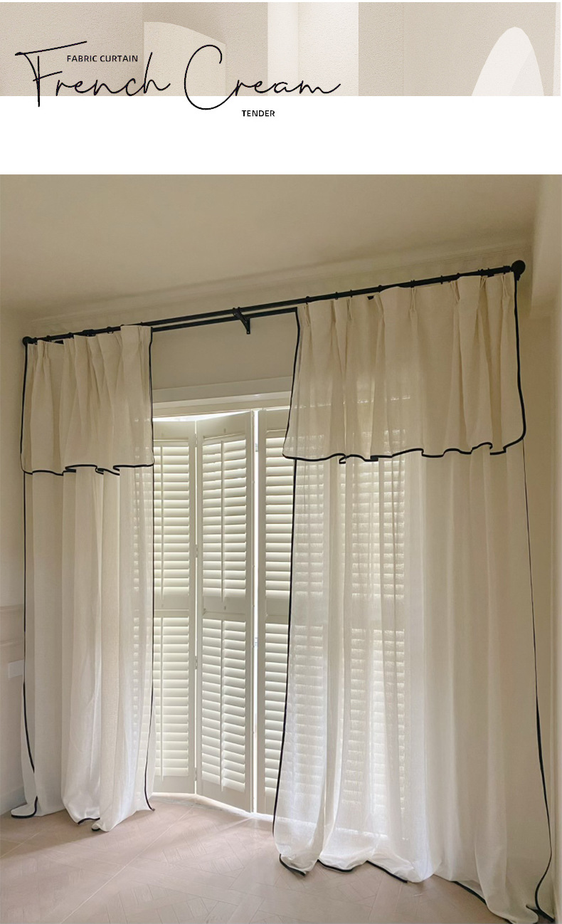 틈새 고급 블랙 커버 크림 린넨 울 원사 거실 발코니 연구 침실 창 화면 완성 된 제품 사용자 정의스토어 가기