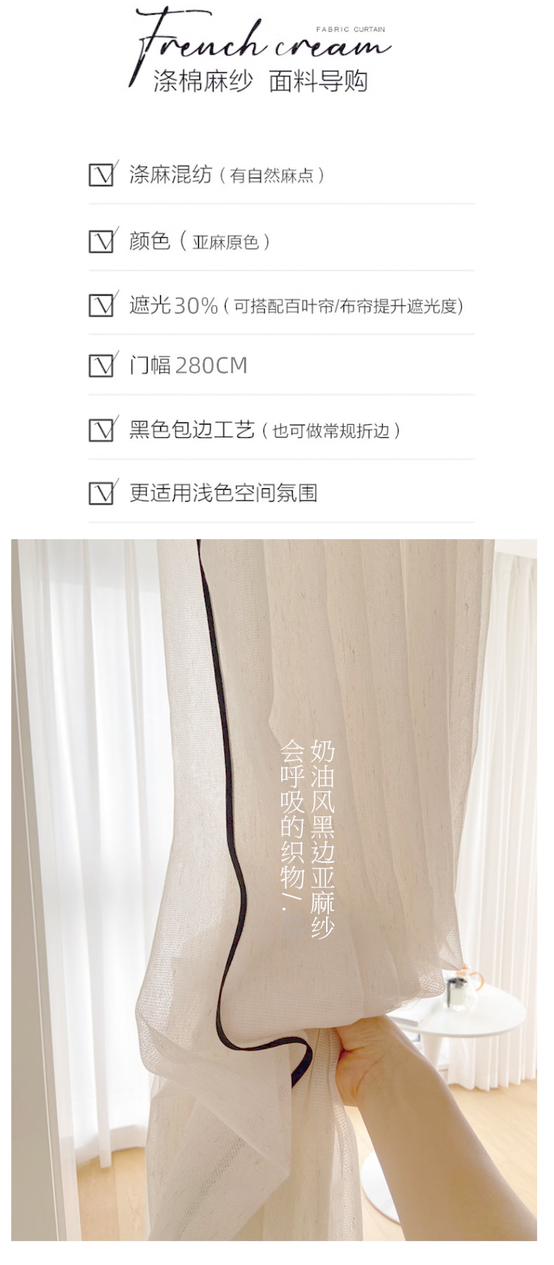 틈새 고급 블랙 커버 크림 린넨 울 원사 거실 발코니 연구 침실 창 화면 완성 된 제품 사용자 정의