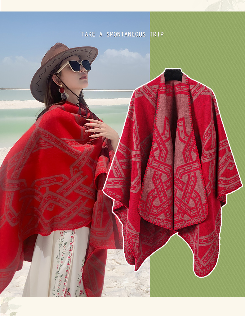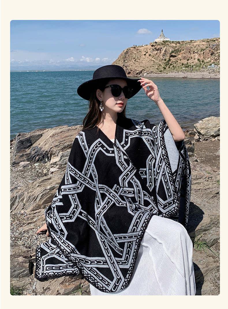 신장 티베트 관광 목도리 여성용 에스닉 스타일 망토 따뜻한 가을과 겨울 사막 초원 사진 착용 망토
