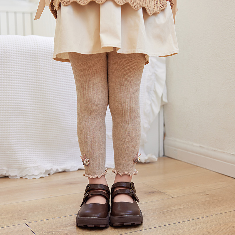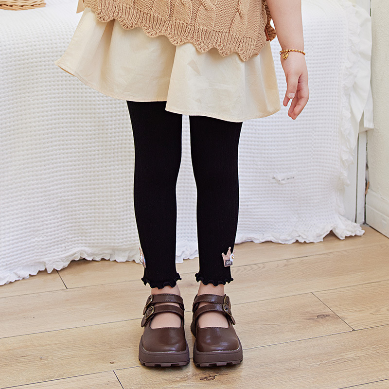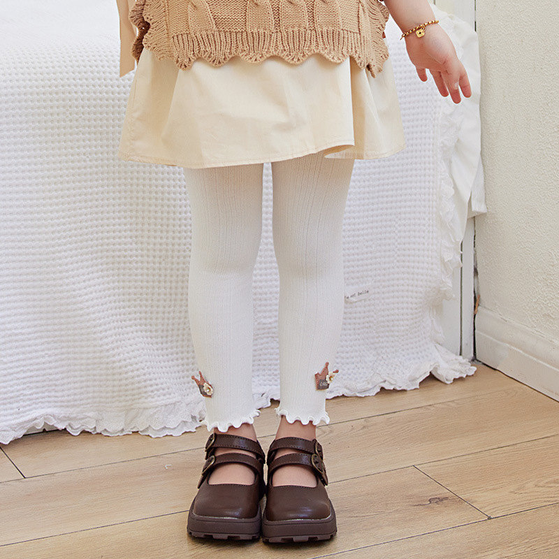가을과 겨울 어린이 레깅스 닦은 나무 귀 크라운 어린이 아기 오픈 길이 바지 기모 패딩 팬티 스타킹