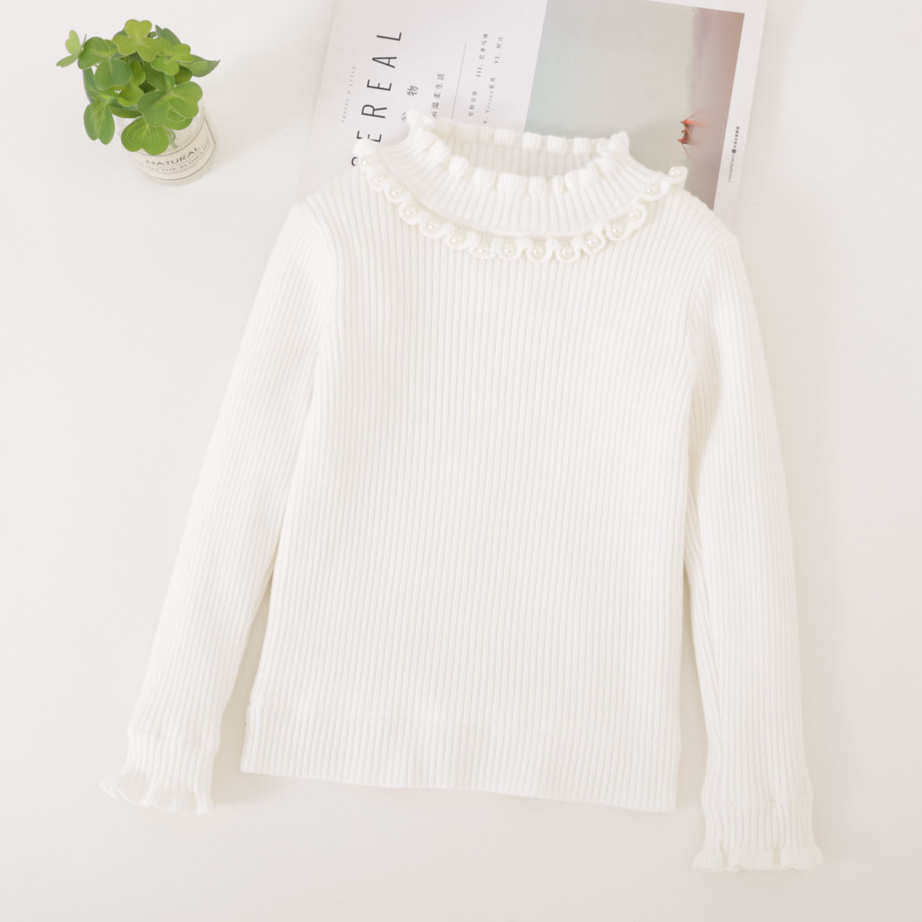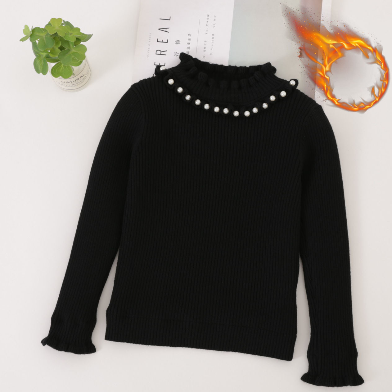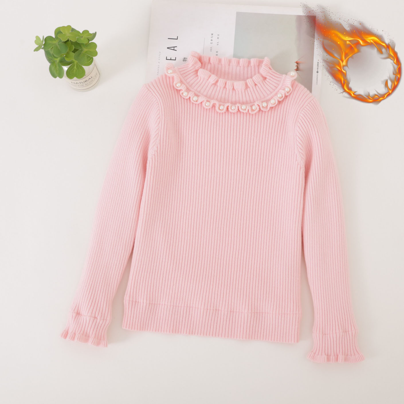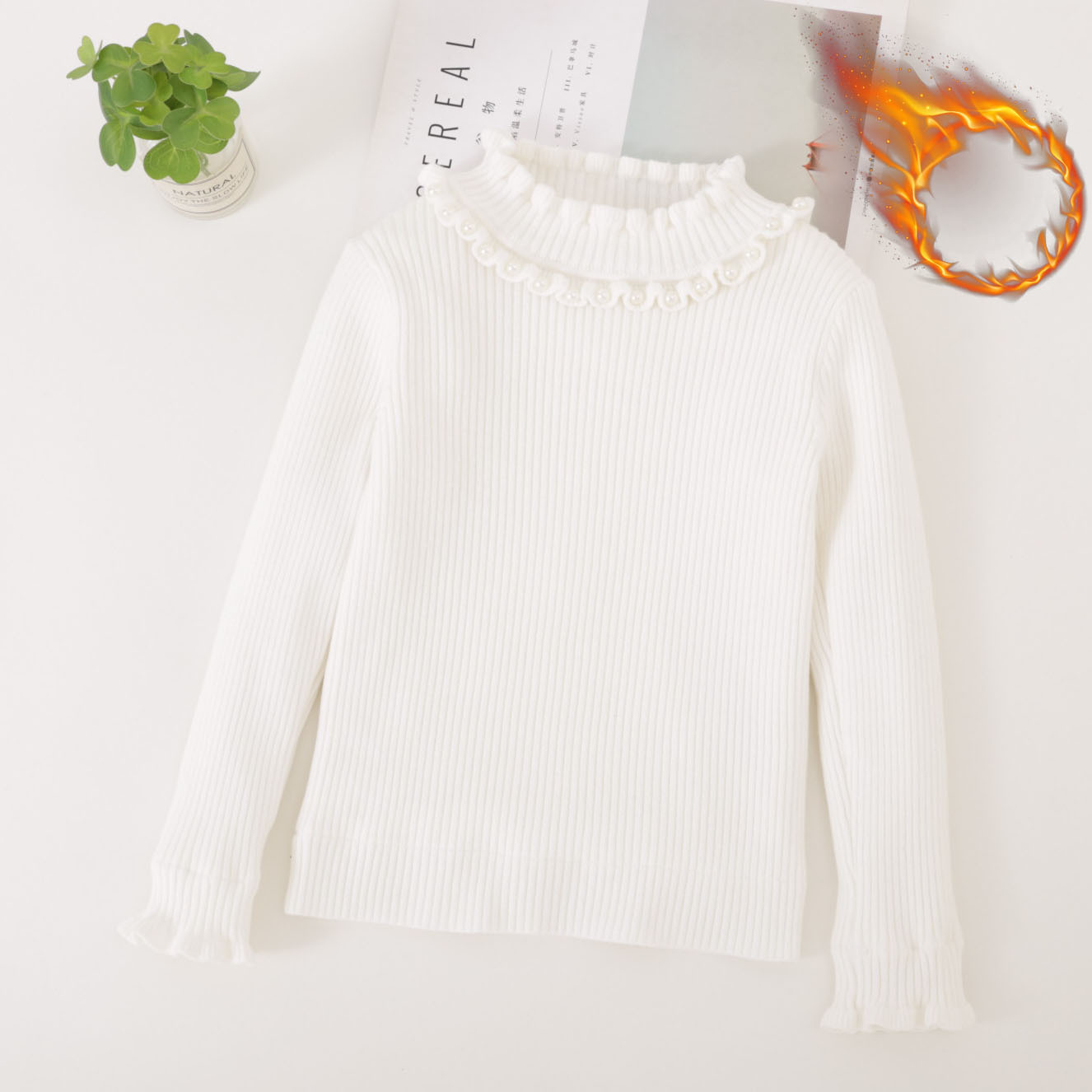 여아 스웨터 겨울 기모 진주 연잎 하프 터틀넥 스웨터 중학생을 위한 모든 매치 솔리드 컬러 베이스 스웨터