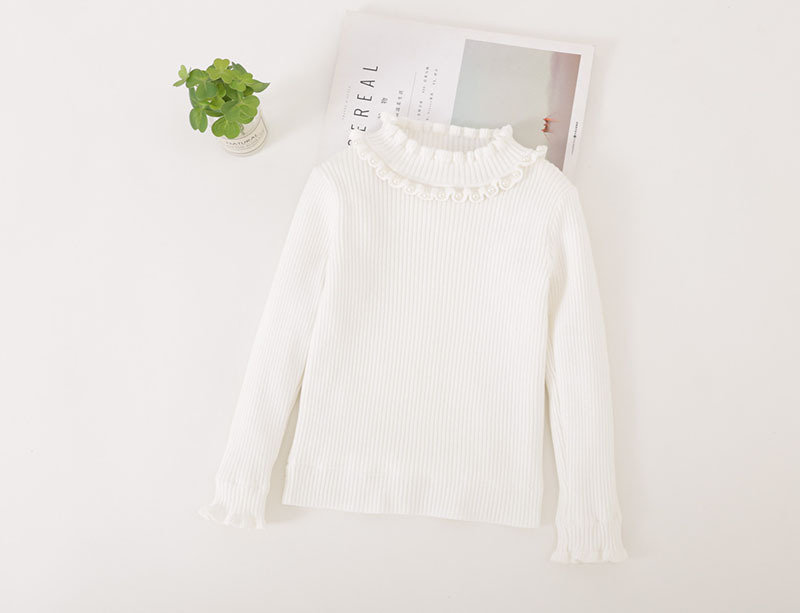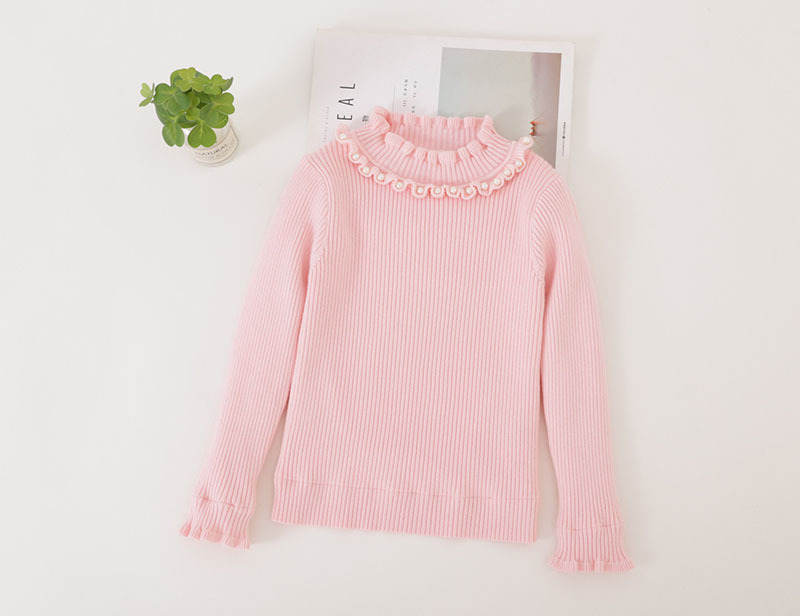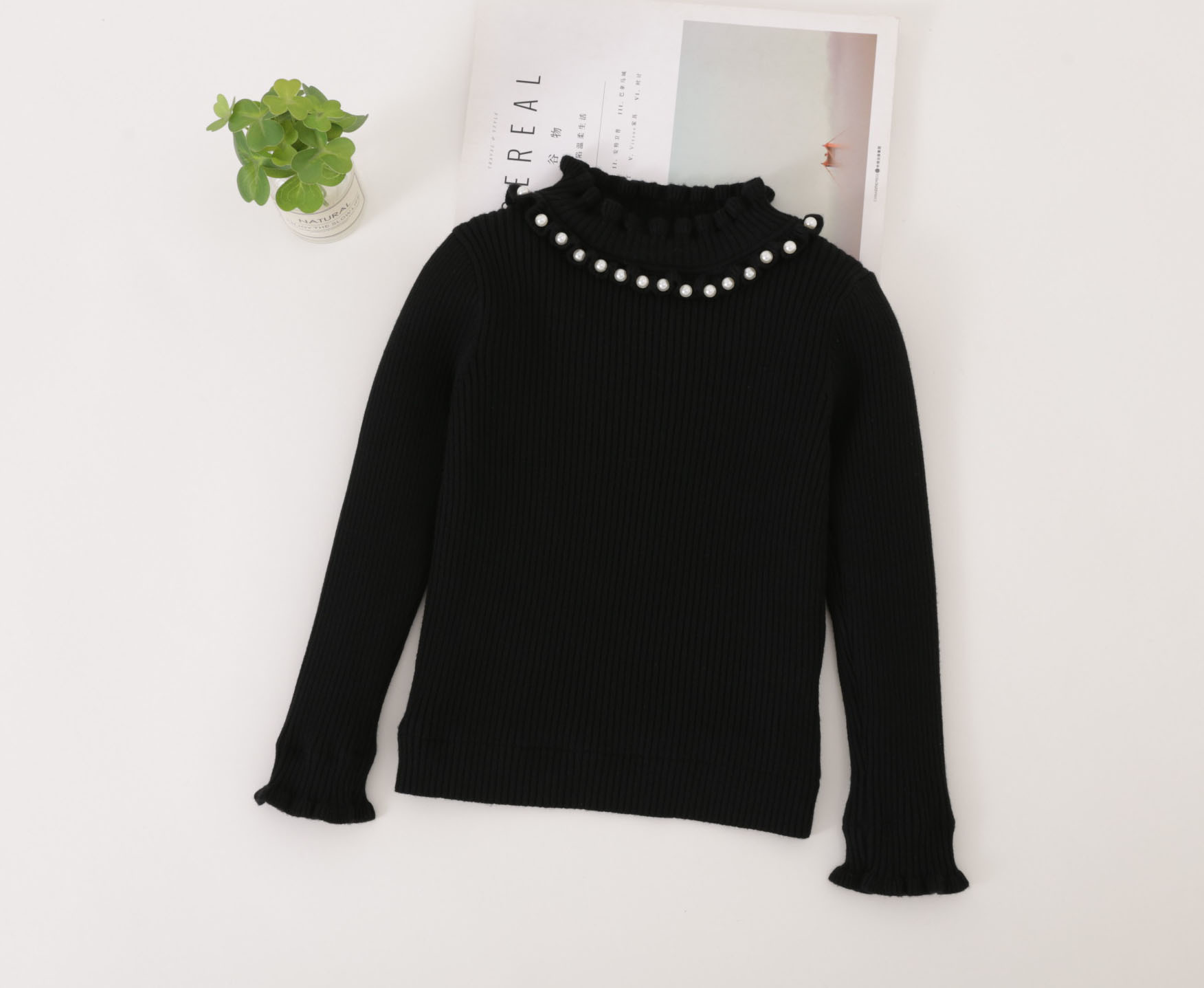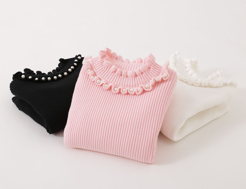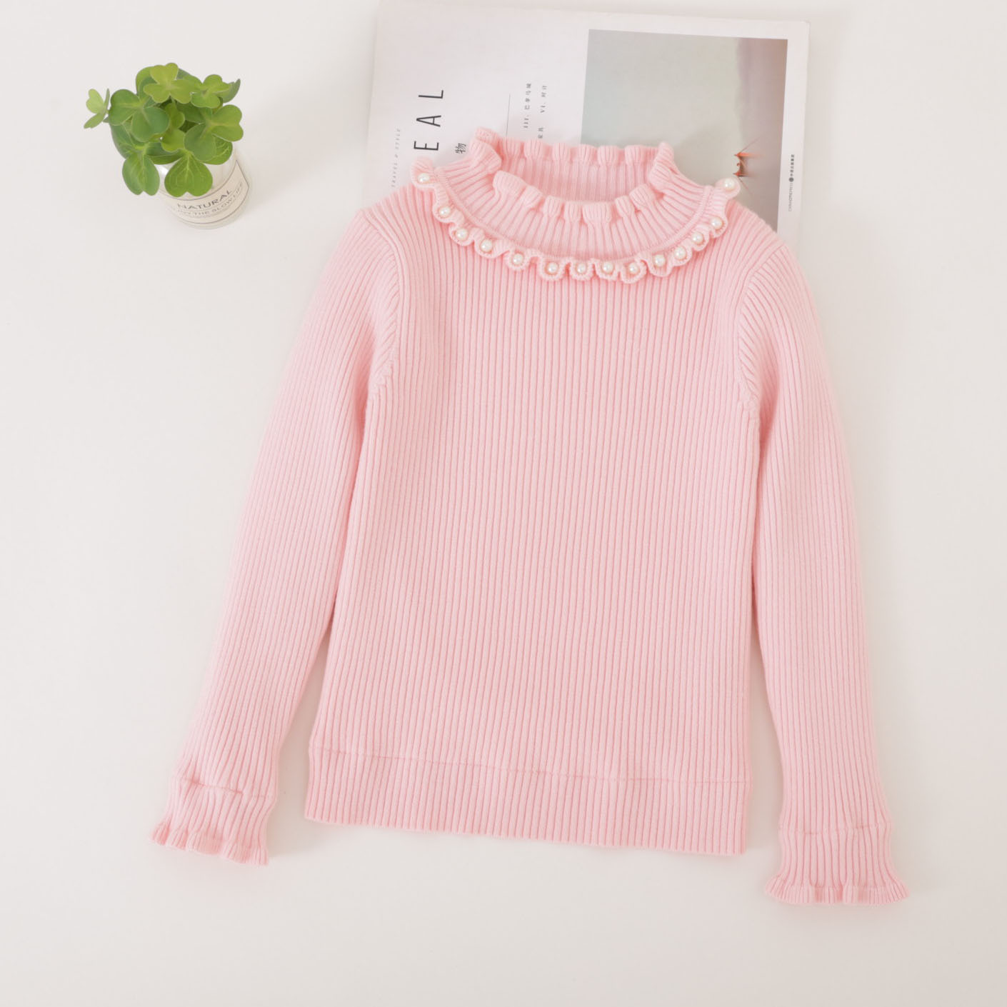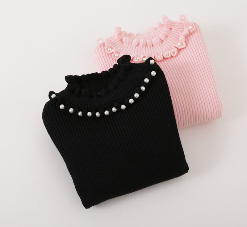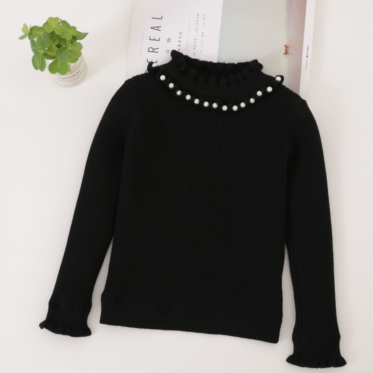 여아 스웨터 겨울 기모 진주 연잎 하프 터틀넥 스웨터 중학생을 위한 모든 매치 솔리드 컬러 베이스 스웨터