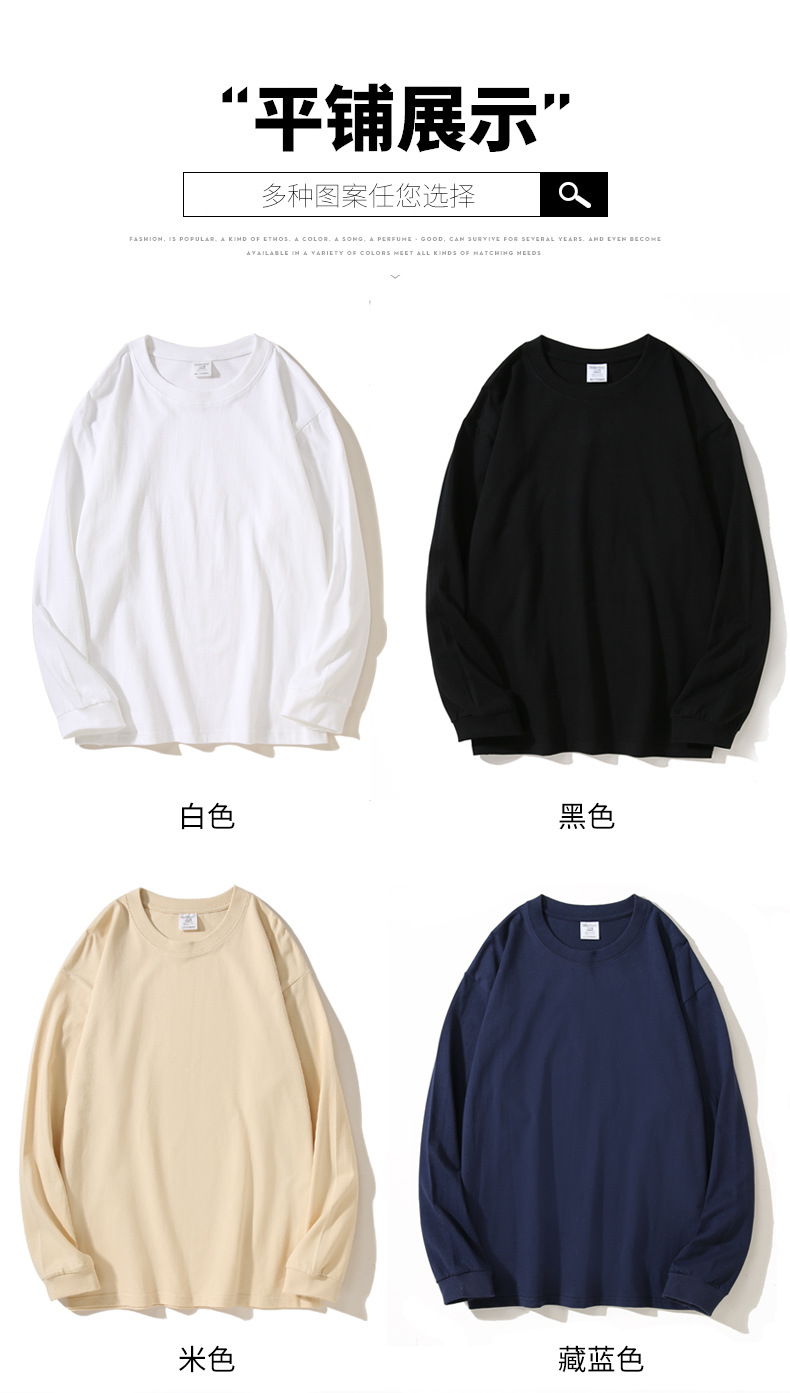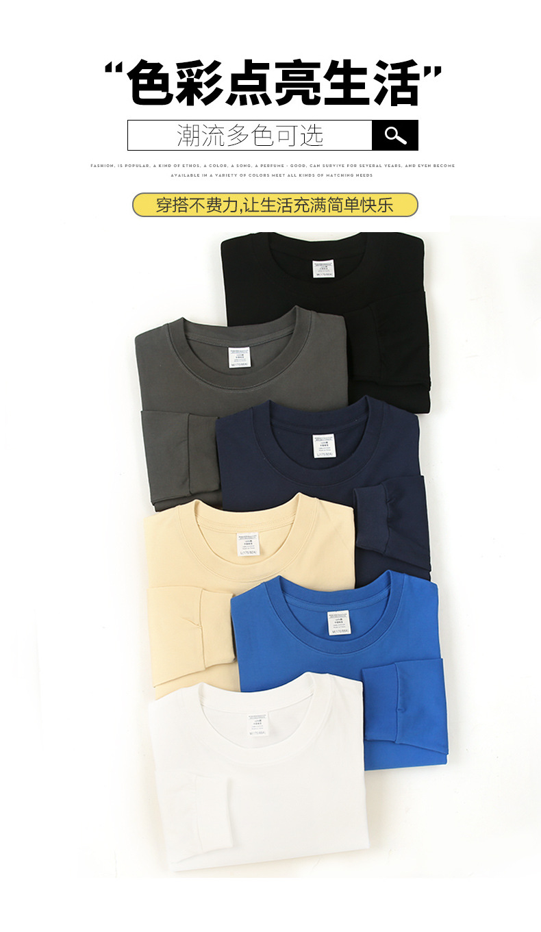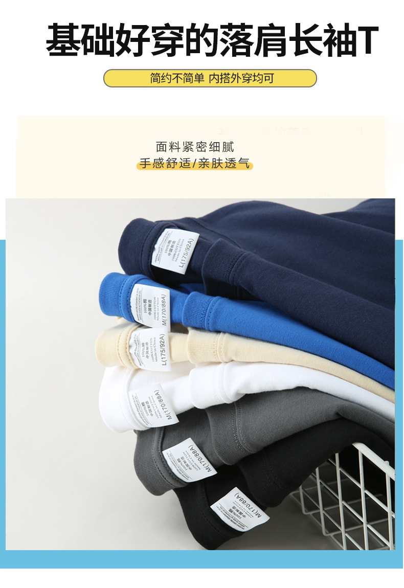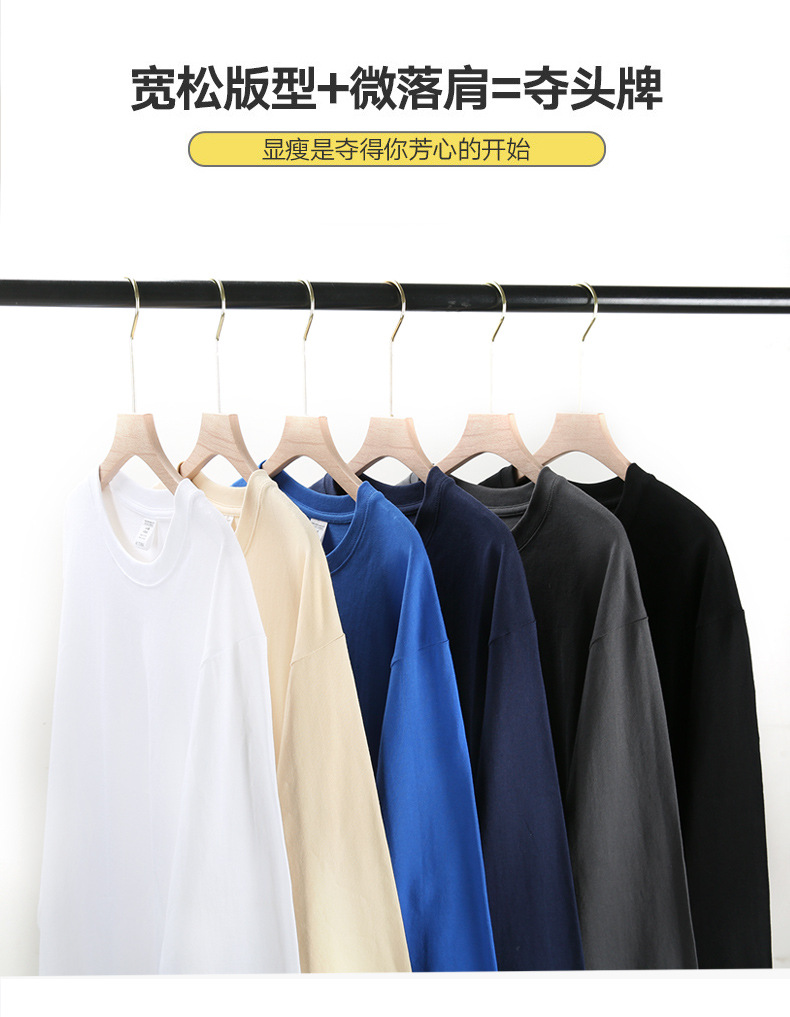 260g 헤비 티셔츠 남성용 단색 면 긴팔 베이직 심플 모든 매치 루즈한 캐주얼 신장 코튼 베이스 셔츠스토어 가기