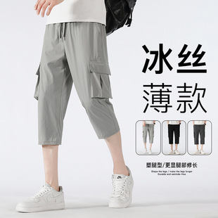 冰丝七分裤男夏季薄款韩版工装休闲裤多口袋凉感四面弹速干运动裤 RMB:43.00