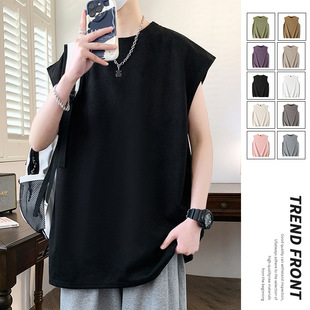 麂皮绒薄款运动背心男2024夏季新款无袖T恤美式简约百搭休闲坎肩 RMB:32.00
