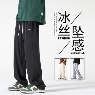 垂感冰丝裤男夏季新款超薄休闲宽松直筒裤纯色百搭透气网眼运动裤 RMB:45.00