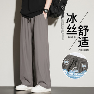 垂感冰丝裤男夏季新款日系百搭休闲裤简约纯色直筒宽松薄款长裤男 RMB:49.00