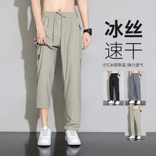 速干冰丝裤男大码薄款休闲裤夏季冰氧吧垂感纯色百搭透气运动裤潮 RMB:55.00