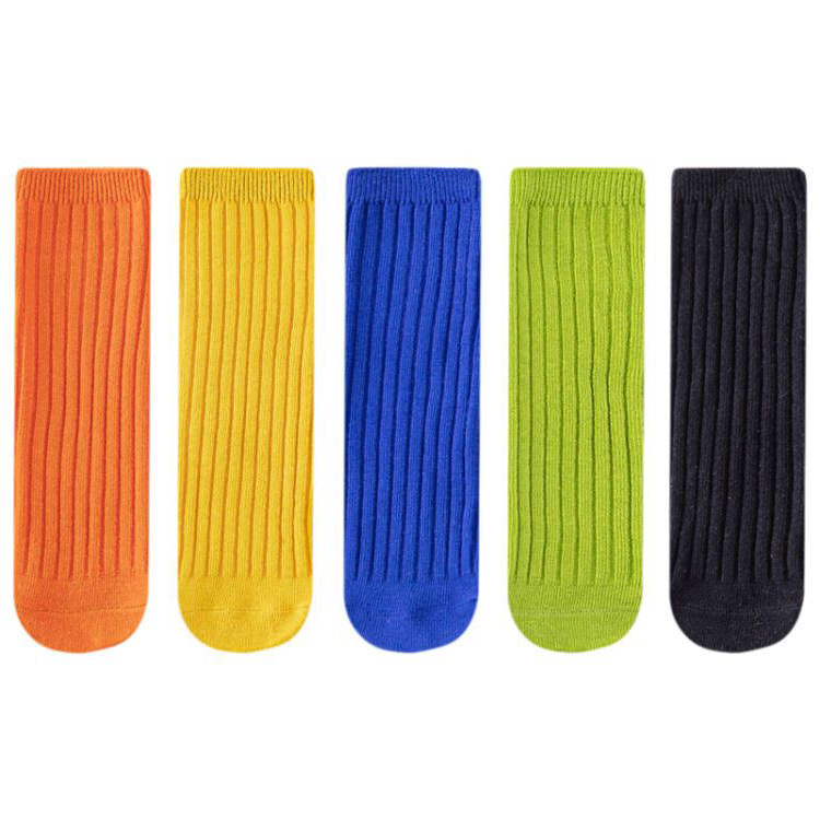 새로운 캔디 컬러 어린이 스태킹 양말 일본식 더블 바늘 수직 면 부모 양말 한국 스타일 귀여운 단색 중간 길이 양말
