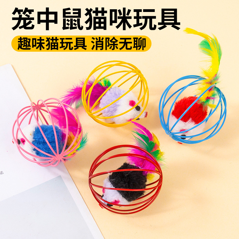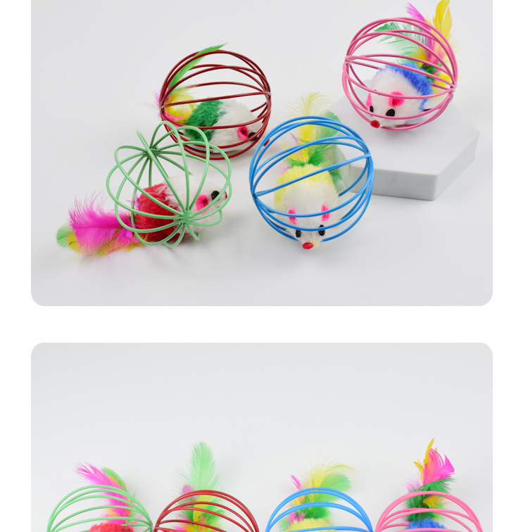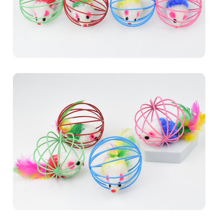 도매 고양이 장난감 케이지 마우스 색상 깃털 색상 페인트 와이어 케이지 고양이 장난감 케이지 마우스 고양이 자기 안녕 장난감스토어 가기