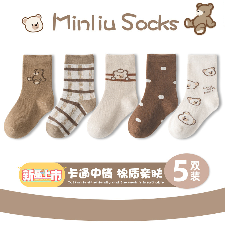 2023 가을과 겨울 어린이 양말 석류 남녀 가을 만화 귀여운 곰 새끼 면화 양말 아기 양말 도매스토어 가기