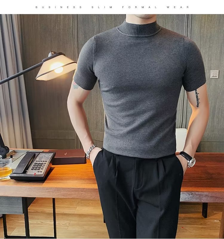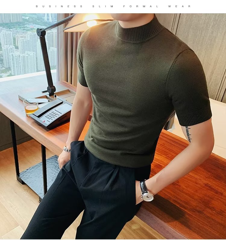 2024년 청소년 패션 여름 반팔 남성 풀오버 니트 반하이넥 캐주얼 스트레이트형 단색스토어 가기