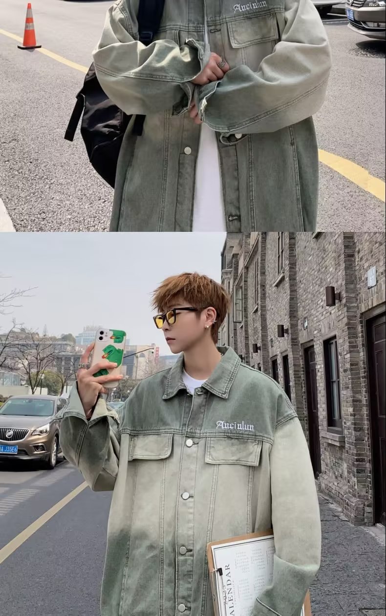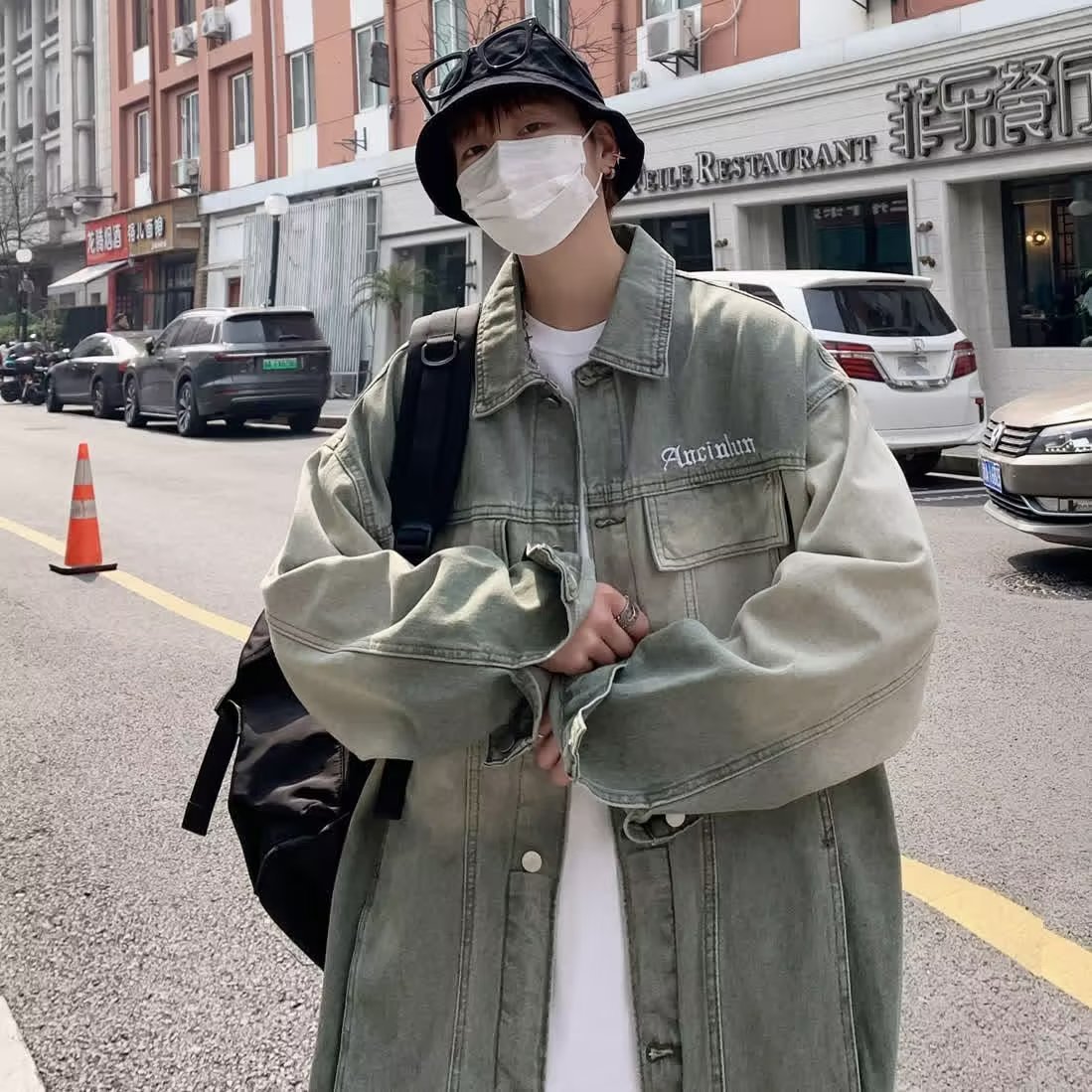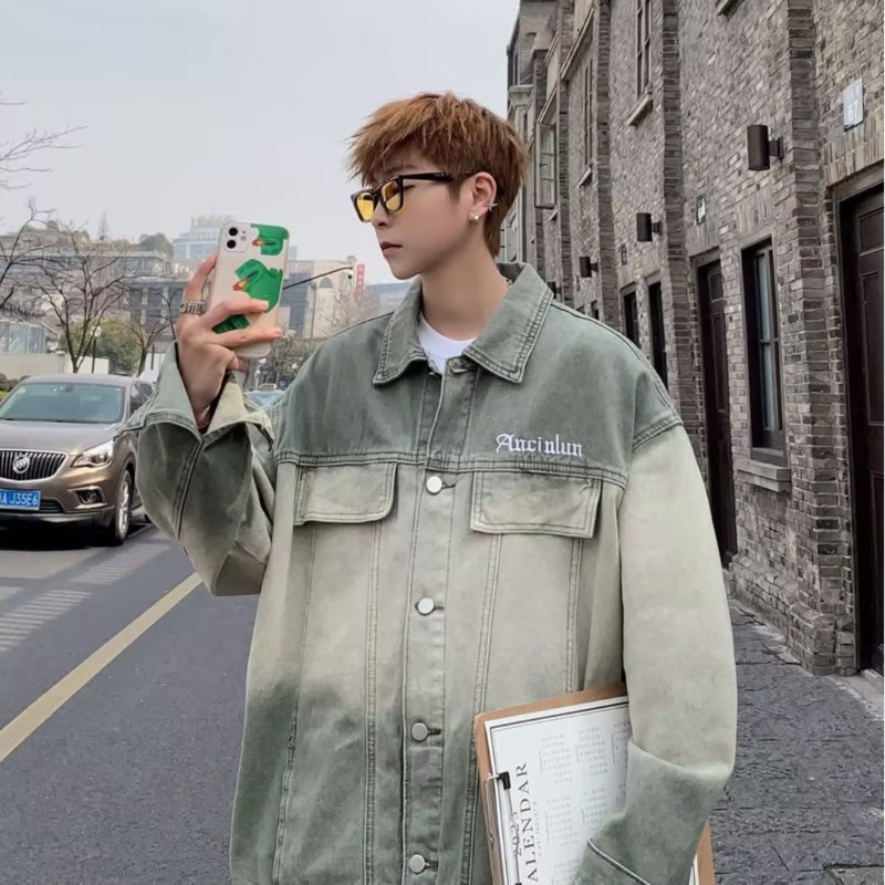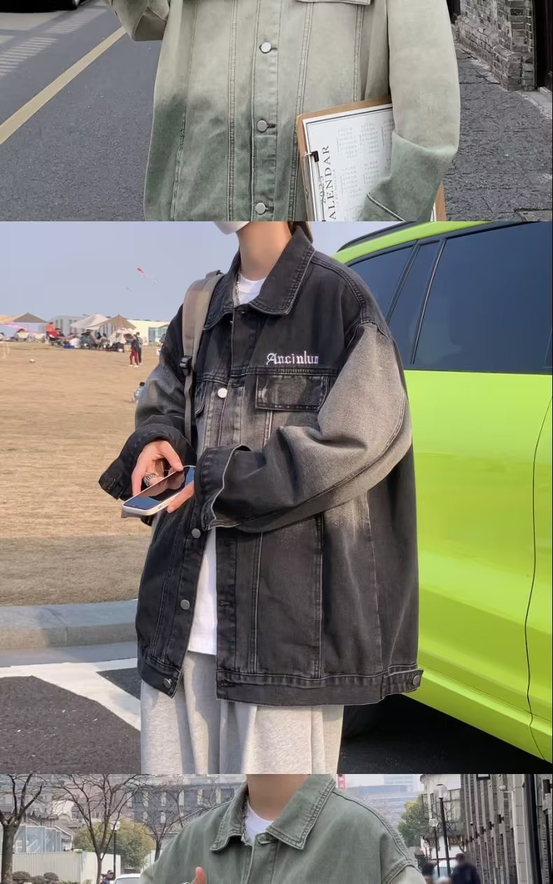 아메리칸 스타일 레트로 그라디언트 데님 재킷 남자의 봄 유행 브랜드 옷깃 작업 재킷 느슨한 캐주얼 십대 탑스토어 가기