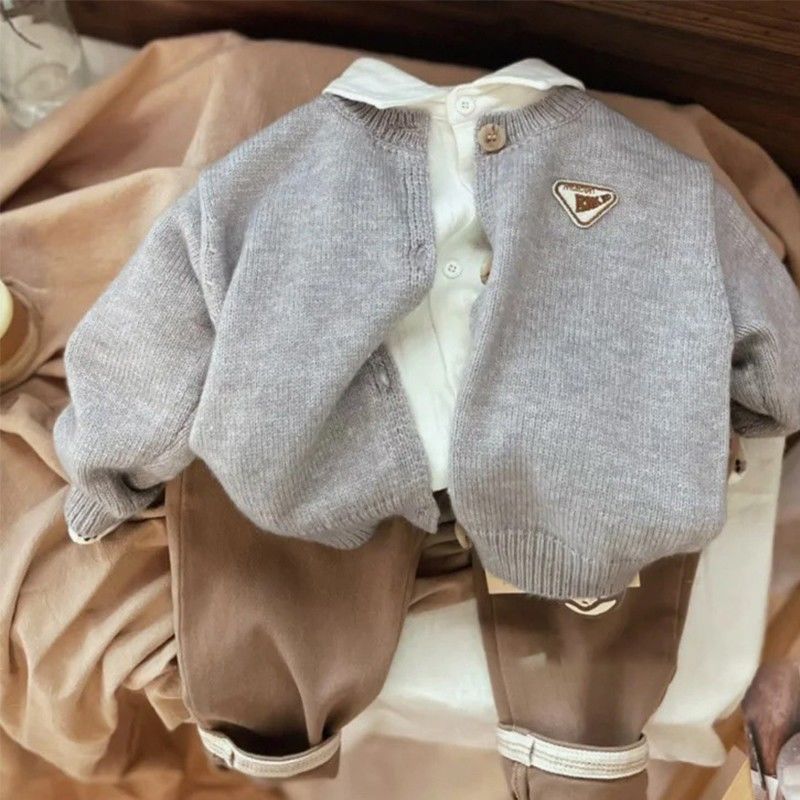 한국 아동복 소년 니트 스웨터 2023 가을 겨울 신상 반팔 아동 가디건 패셔너블한 아우터웨어스토어 가기