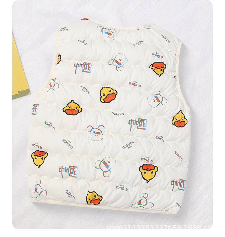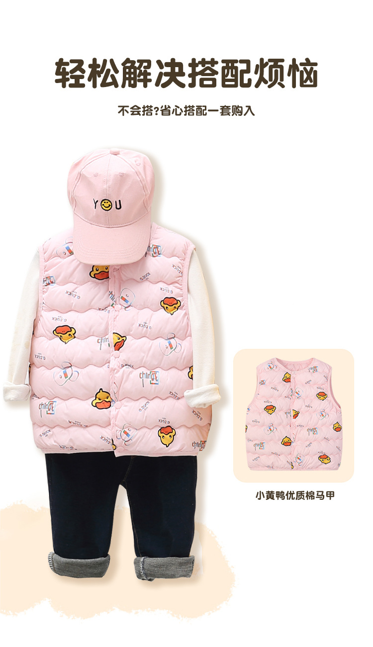 작은 노란 오리 2023 새로운 아기 소년 소녀 작은 조끼 조끼 아이들은 만화 물결 따뜻한 조끼를 안팎에 착용합니다.스토어 가기