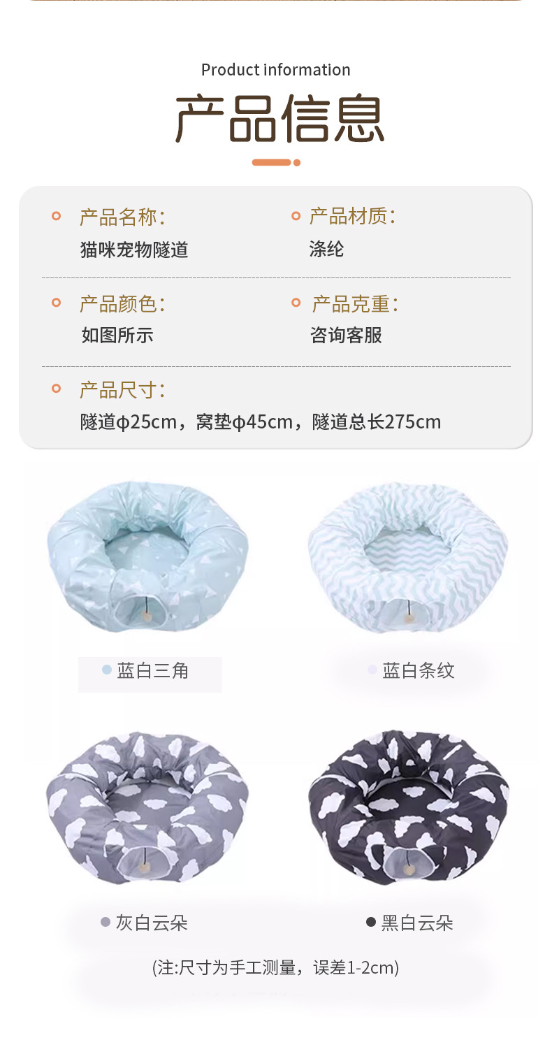 제조업체 핫세일 고양이 터널 접이식 고양이 집 크롤링 터널 놀이터 신제품 사계절 장난감 도매