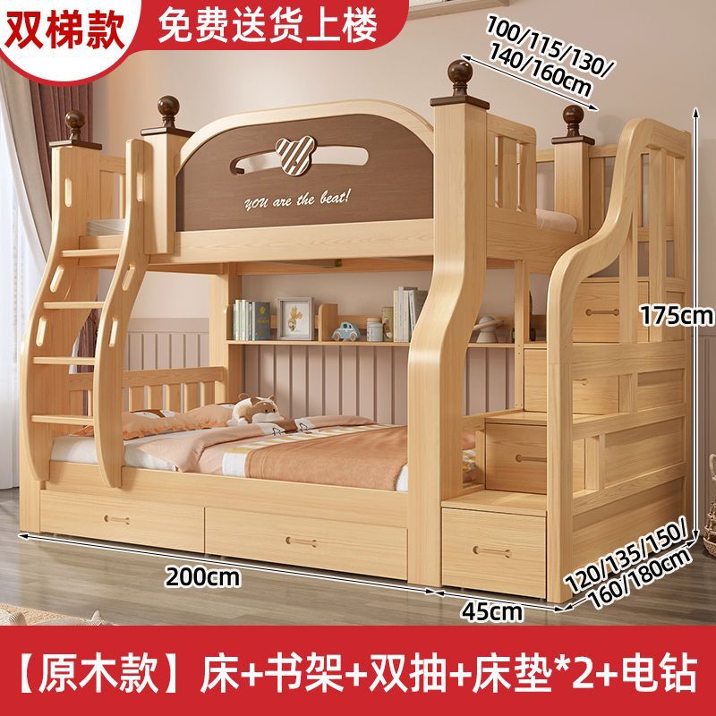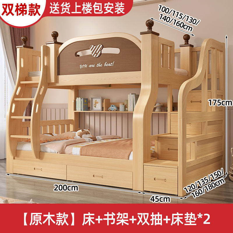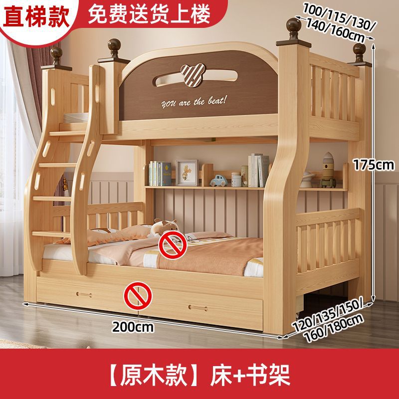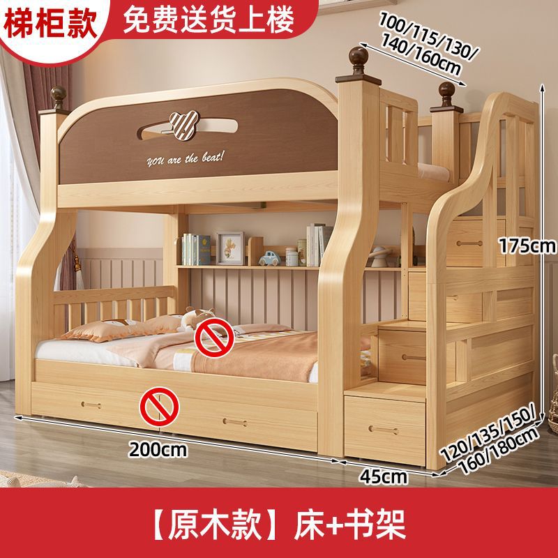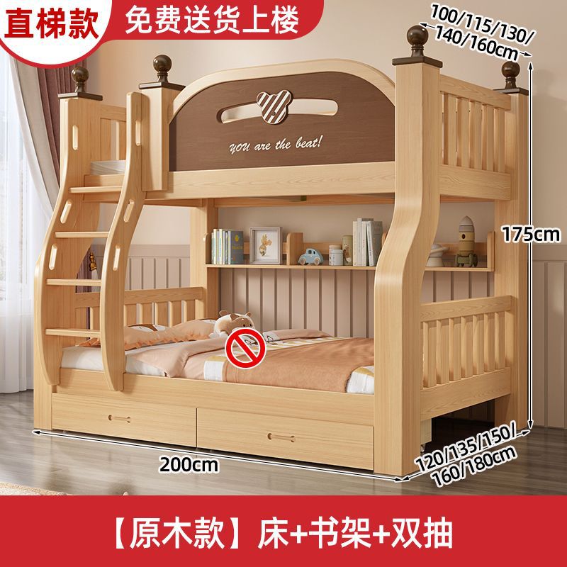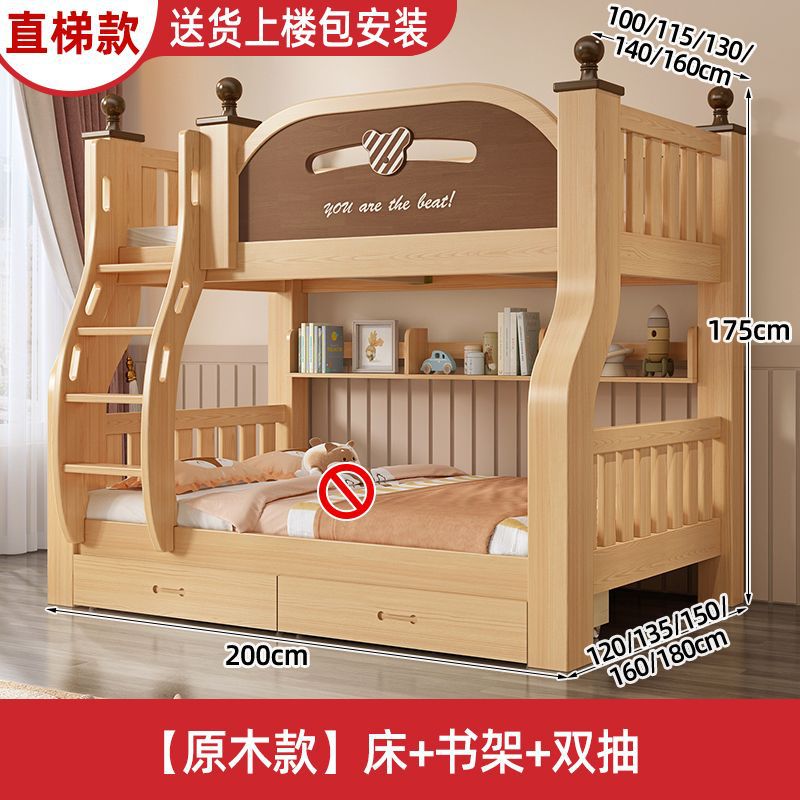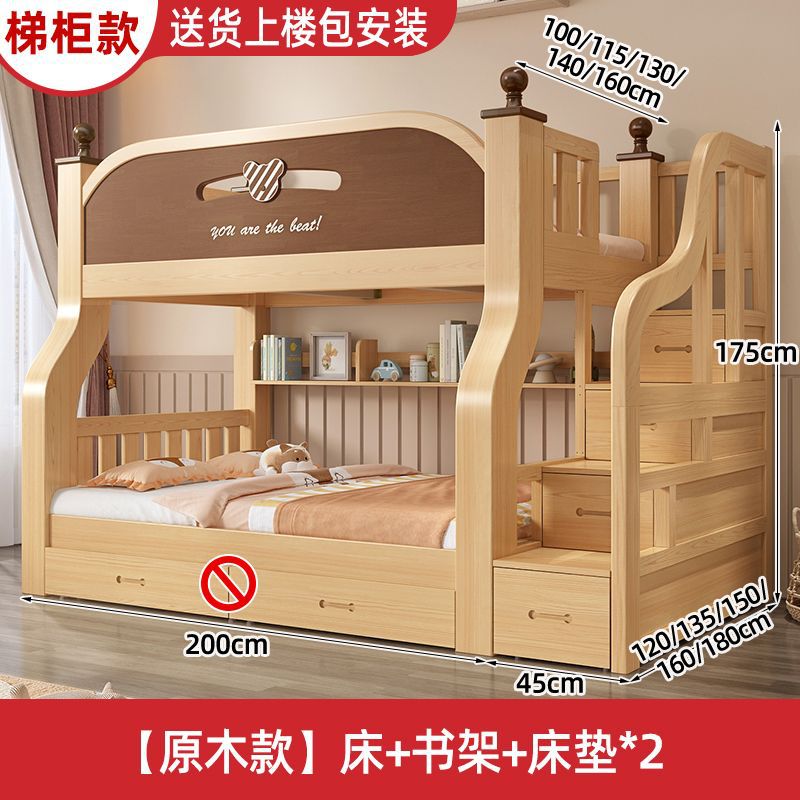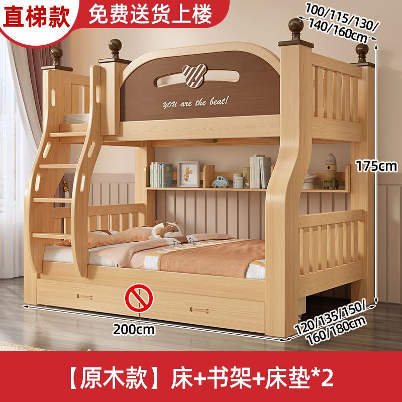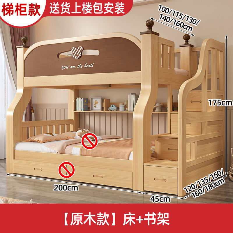 단단한 나무 이층 침대 이층 침대 작은 아파트 선반 더블 침대 2 층 나무 침대 높고 낮은 어린이 침대