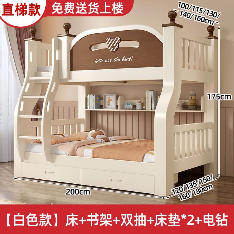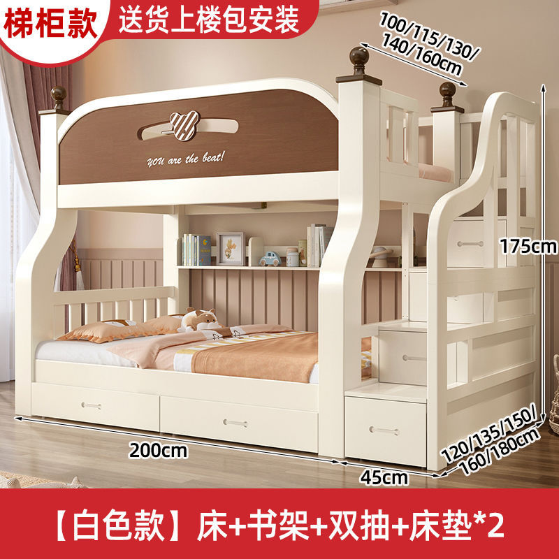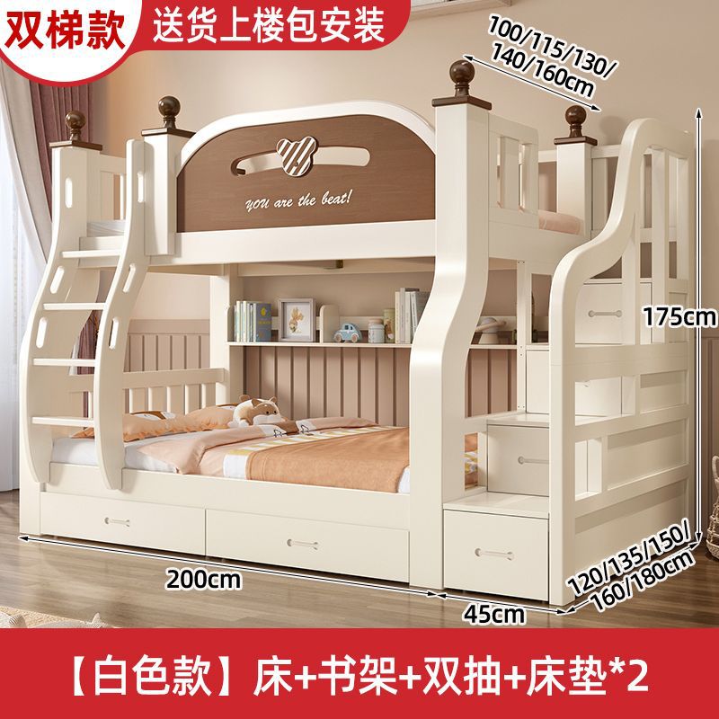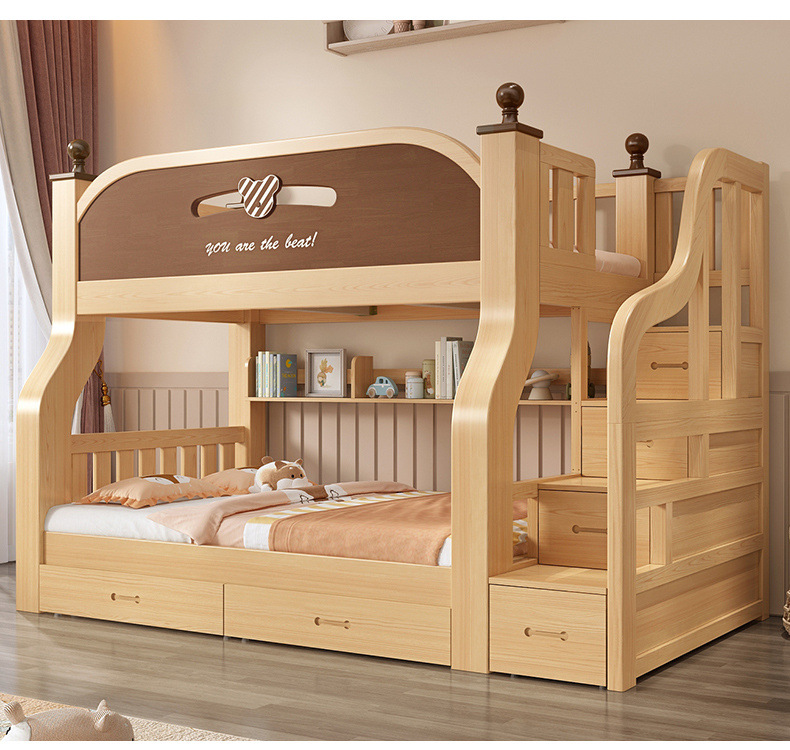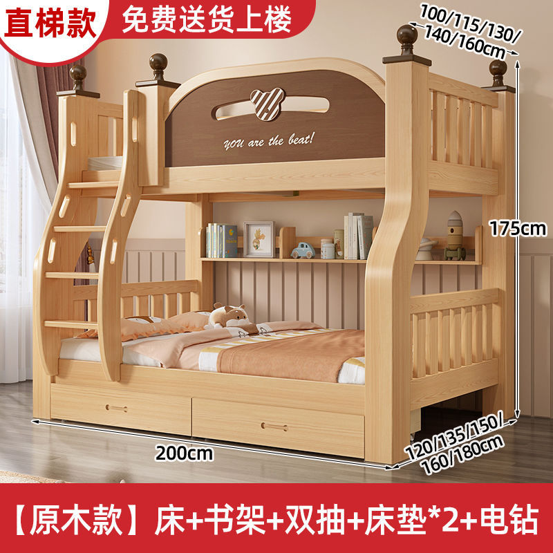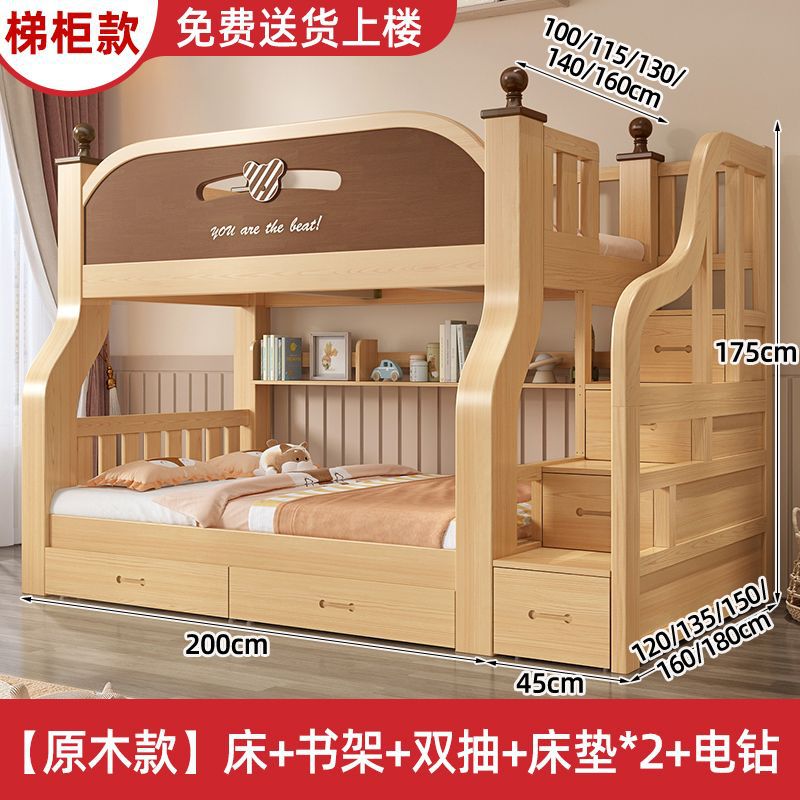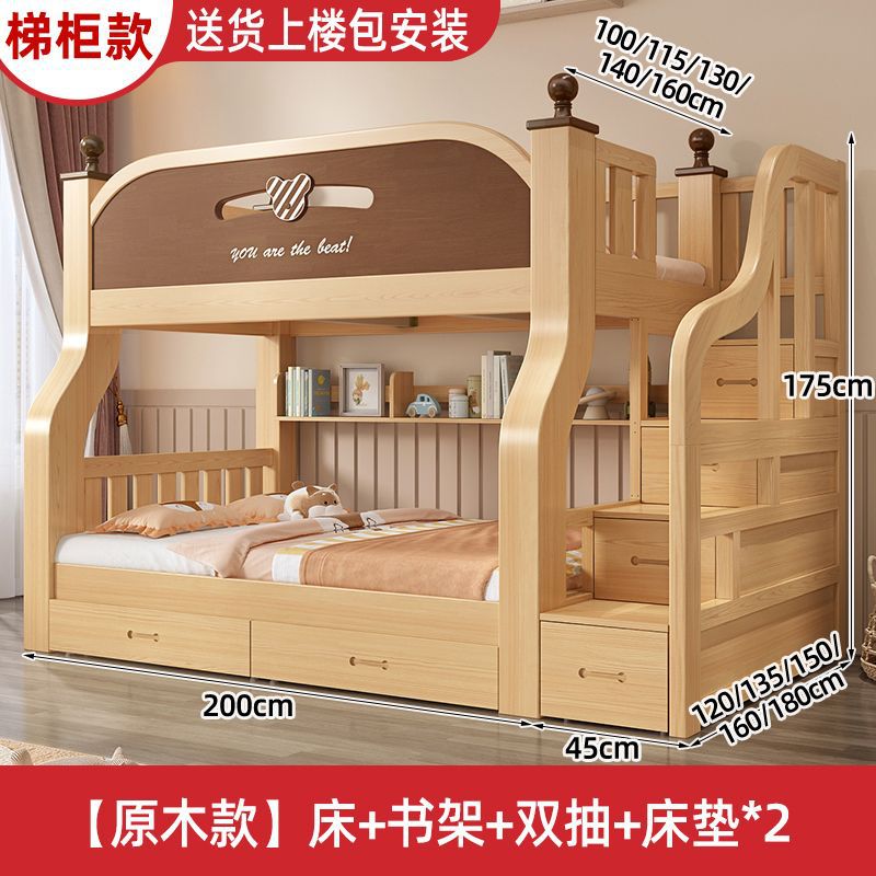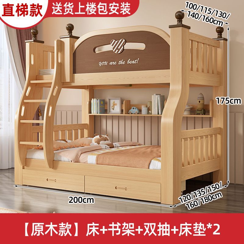 단단한 나무 이층 침대 이층 침대 작은 아파트 선반 더블 침대 2 층 나무 침대 높고 낮은 어린이 침대
