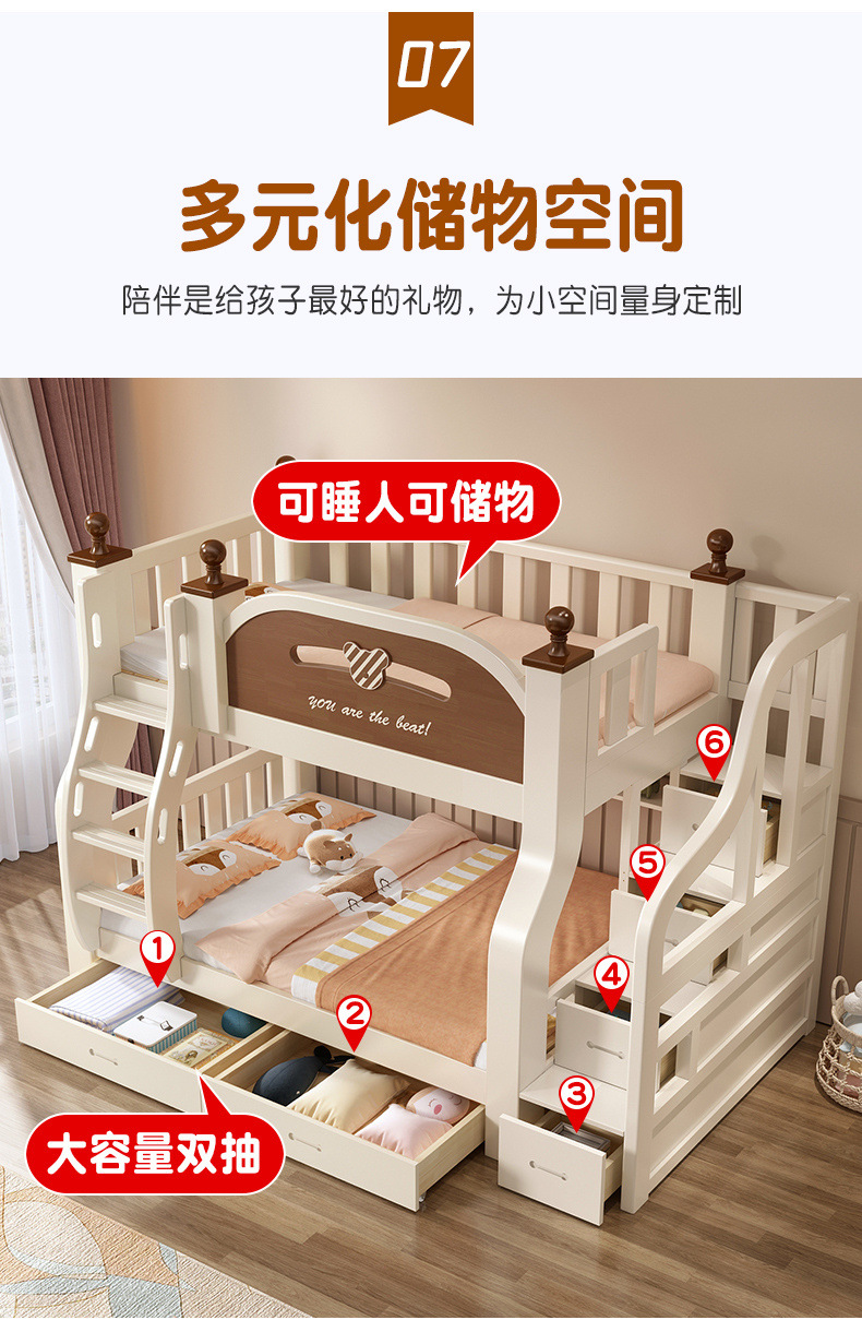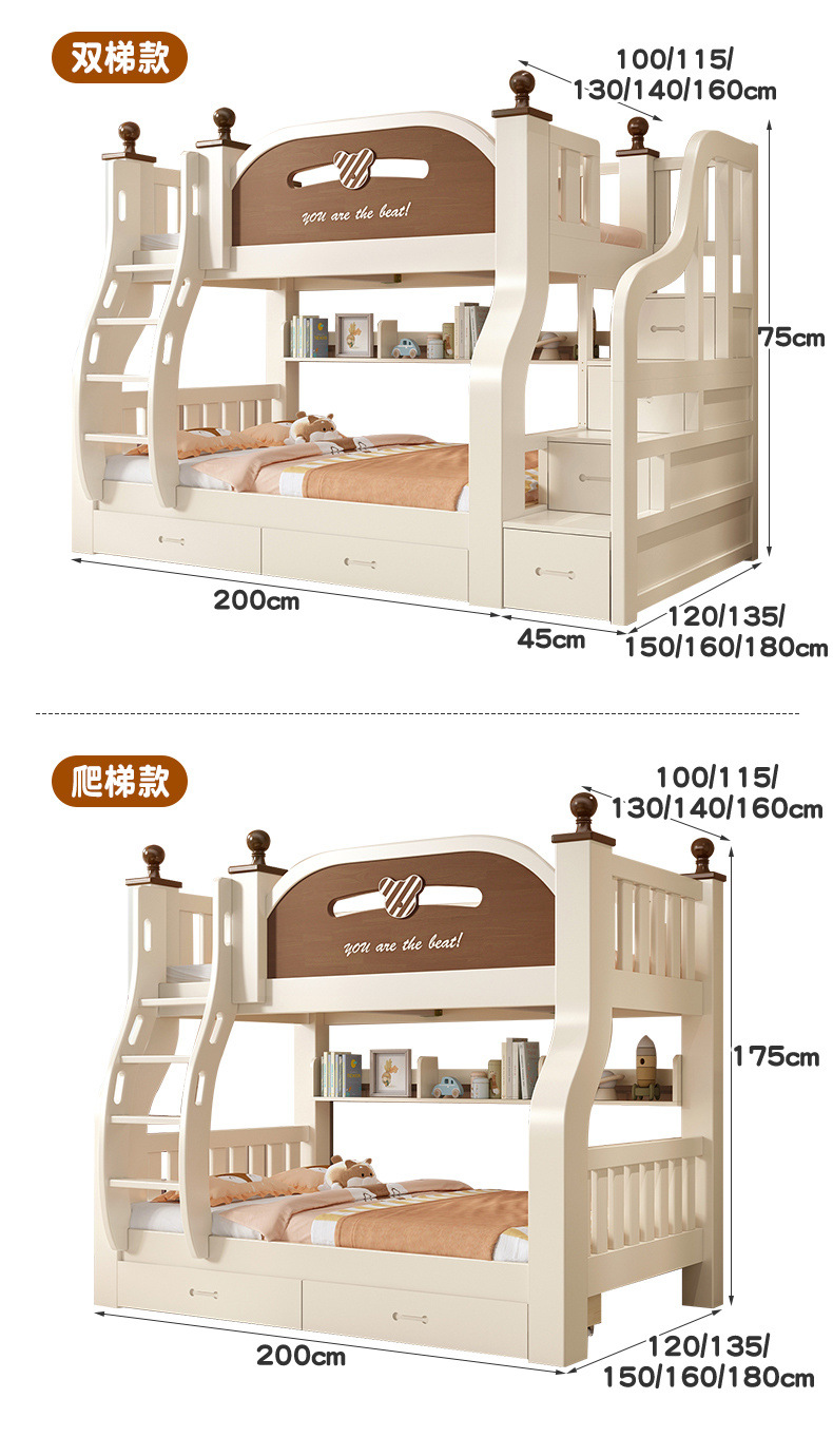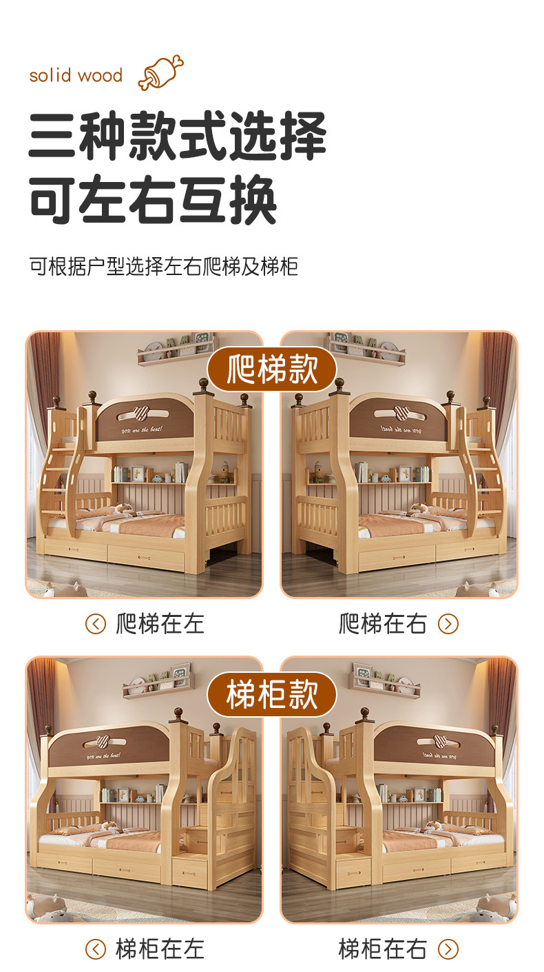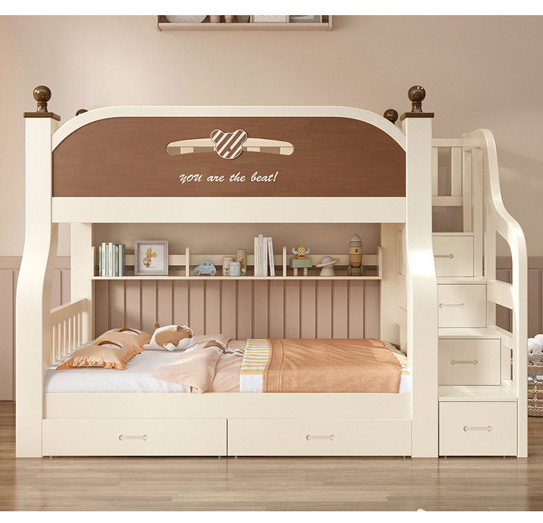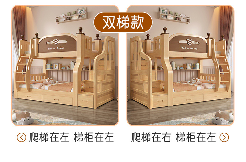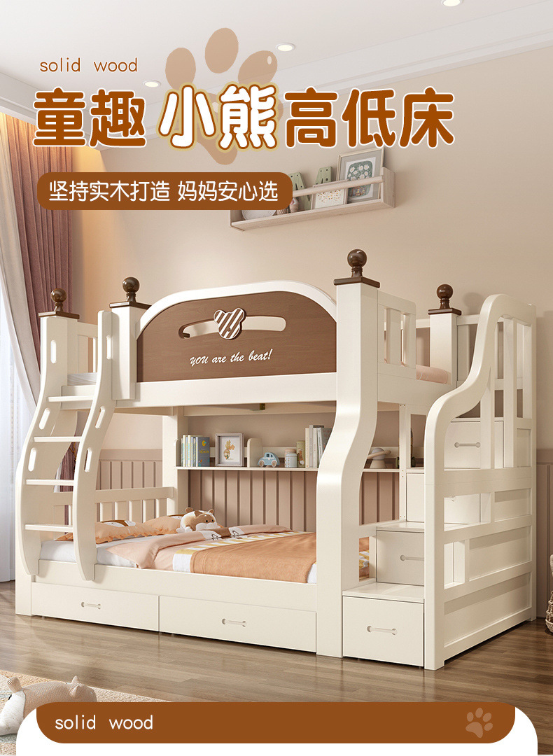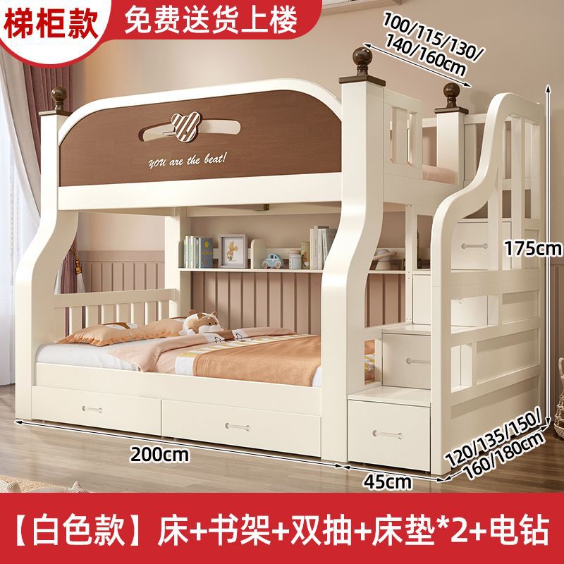 단단한 나무 이층 침대 이층 침대 작은 아파트 선반 더블 침대 2 층 나무 침대 높고 낮은 어린이 침대