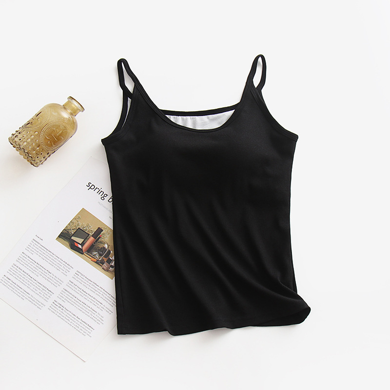 여성용 캐미솔 여름 새로운 스타일 브래지어 가슴 패드 원피스 화이트 아우터웨어 베이스 내부 민소매 블랙 탑