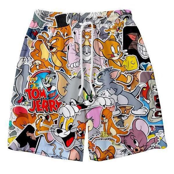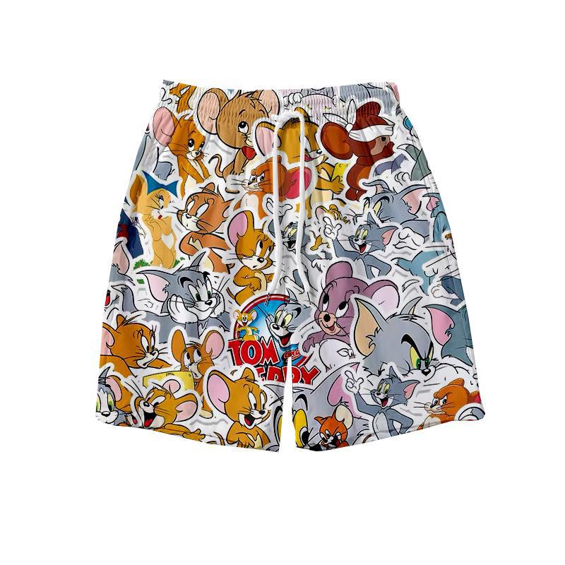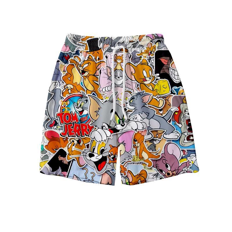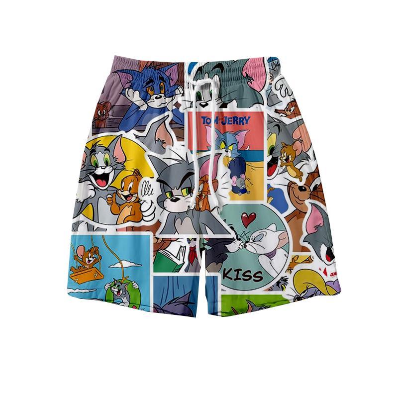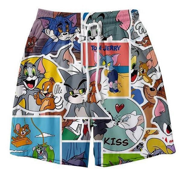 고양이와 마우스 새로운 반바지 남성용 여름 스트레이트 얇은 해변 비치 바지 하프 커플 바지 캐주얼 대형 바지