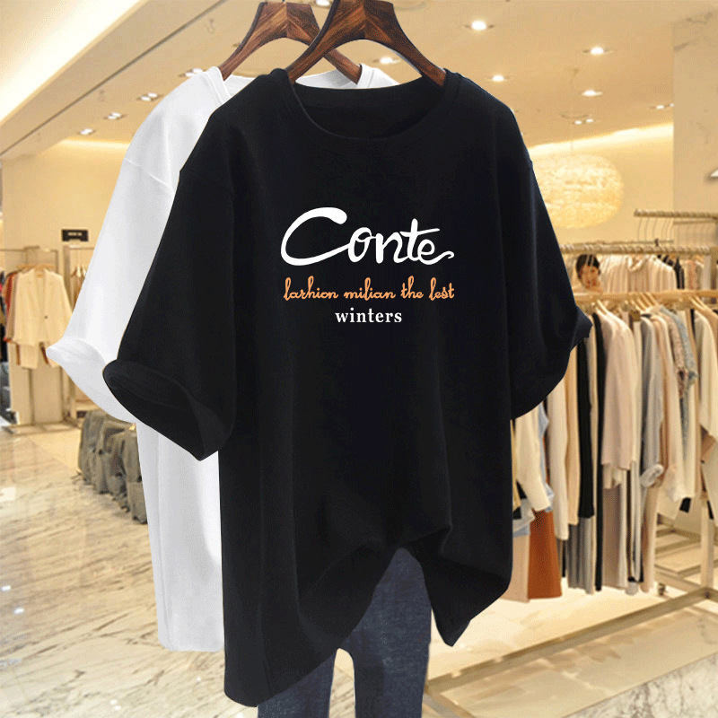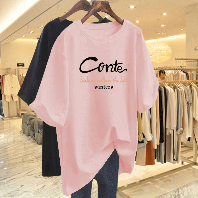 도매 2023 여름 새로운 200kg 통통녀 플러스 사이즈 여자의 면 반팔 티셔츠 여자의 느슨한 반 소매 옷스토어 가기