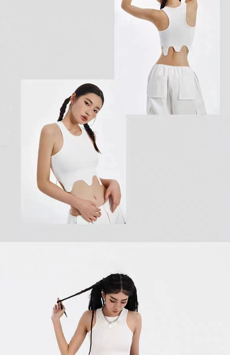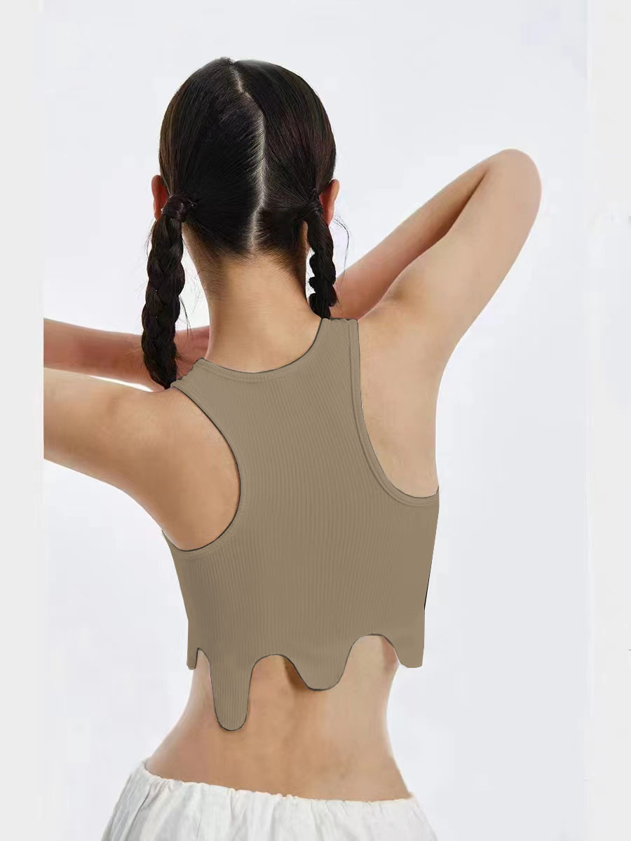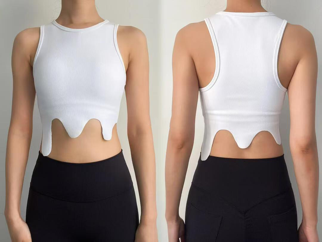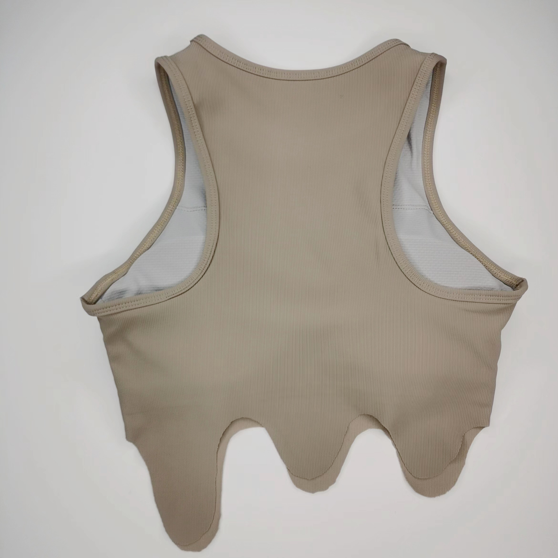 유럽과 미국의 새로운 스레드 가슴 패드 피트니스 여성용 민소매 밑단 불규칙한 고탄성 충격 흡수 스포츠 요가 의류