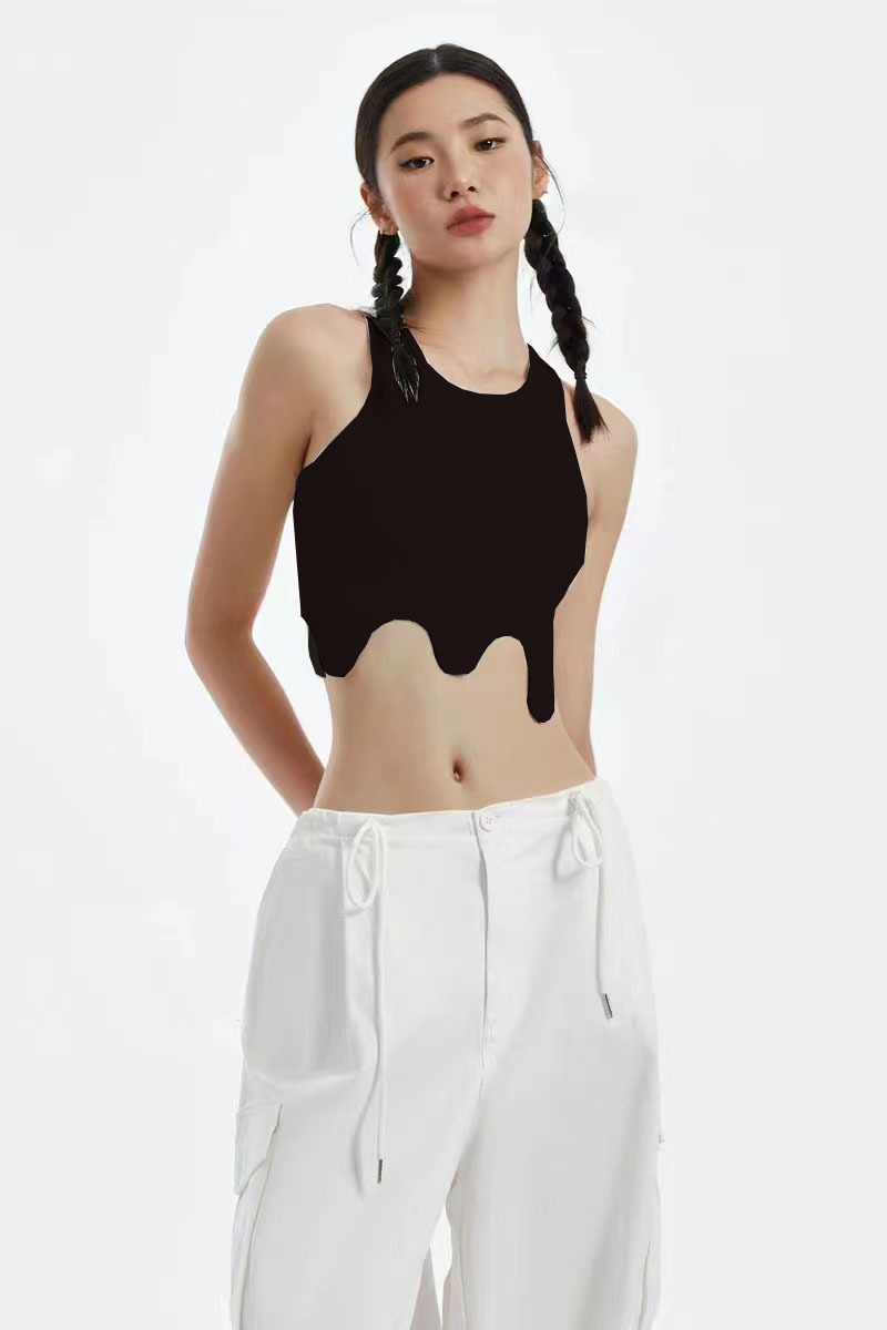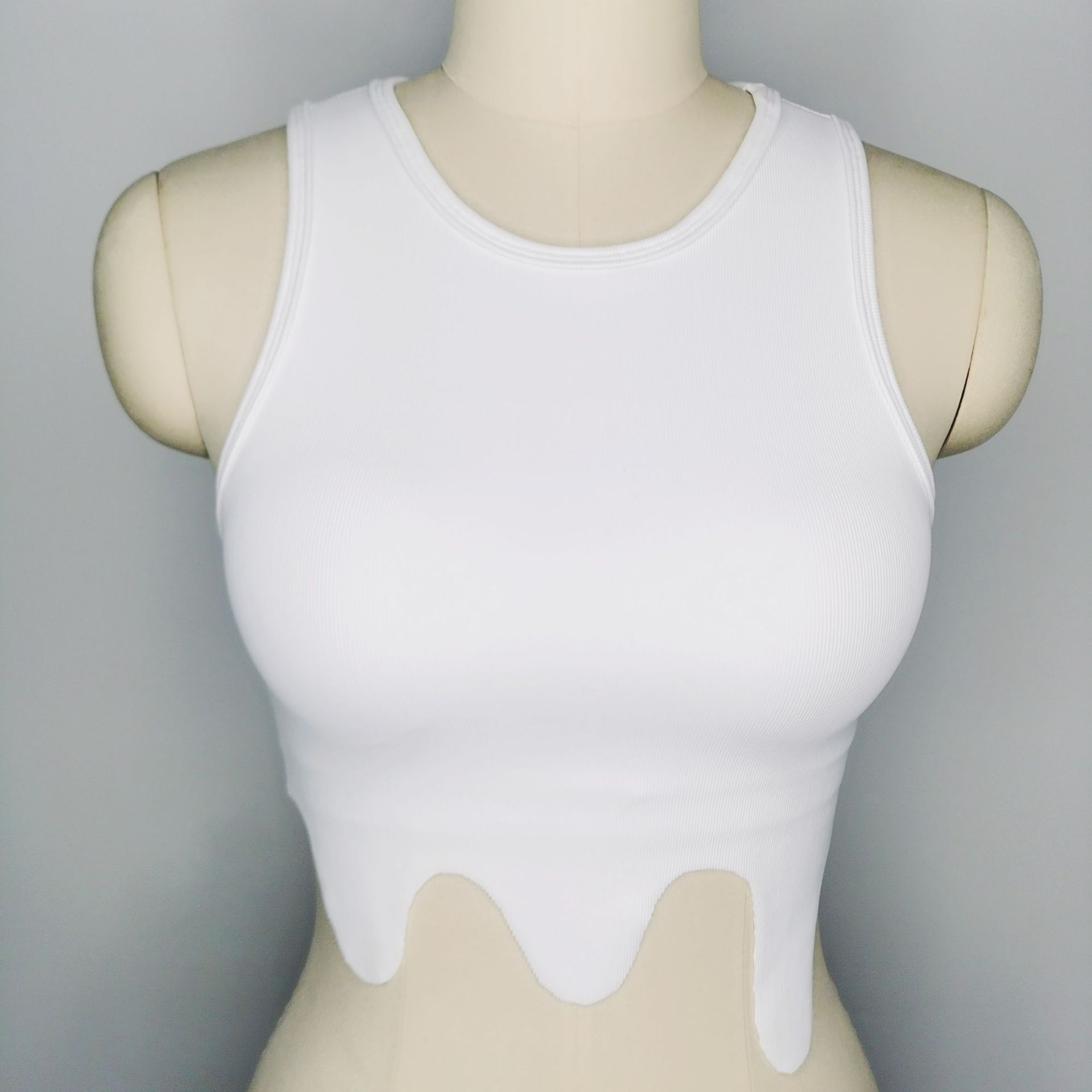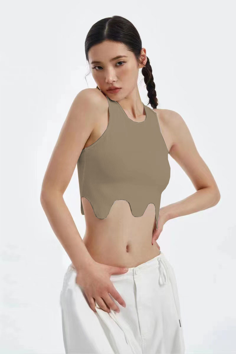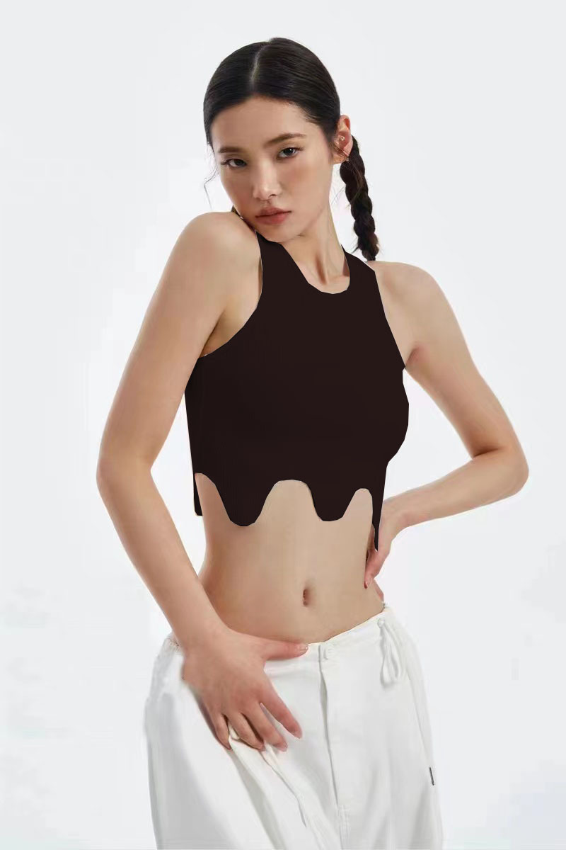 유럽과 미국의 새로운 스레드 가슴 패드 피트니스 여성용 민소매 밑단 불규칙한 고탄성 충격 흡수 스포츠 요가 의류