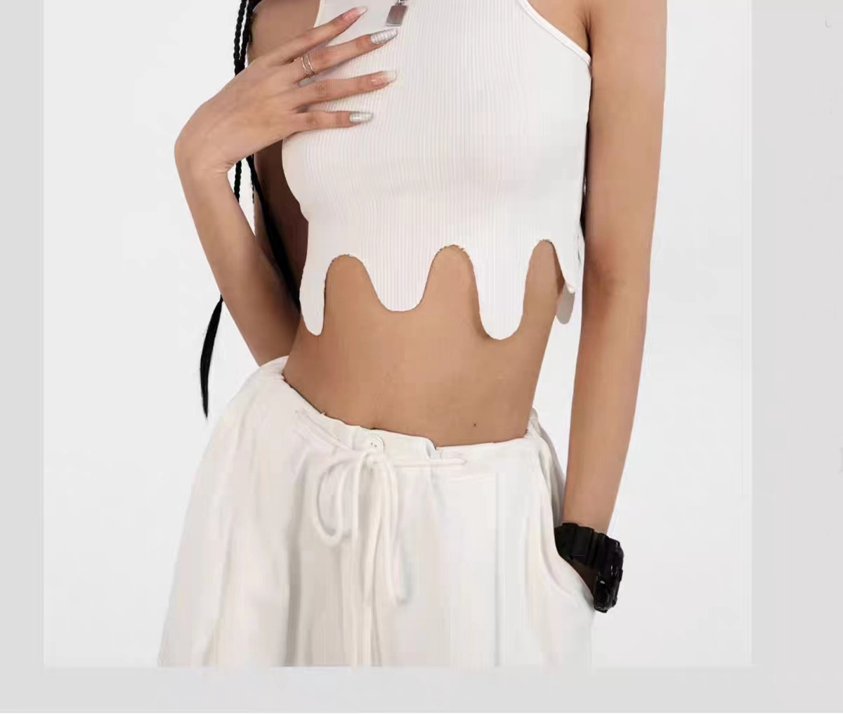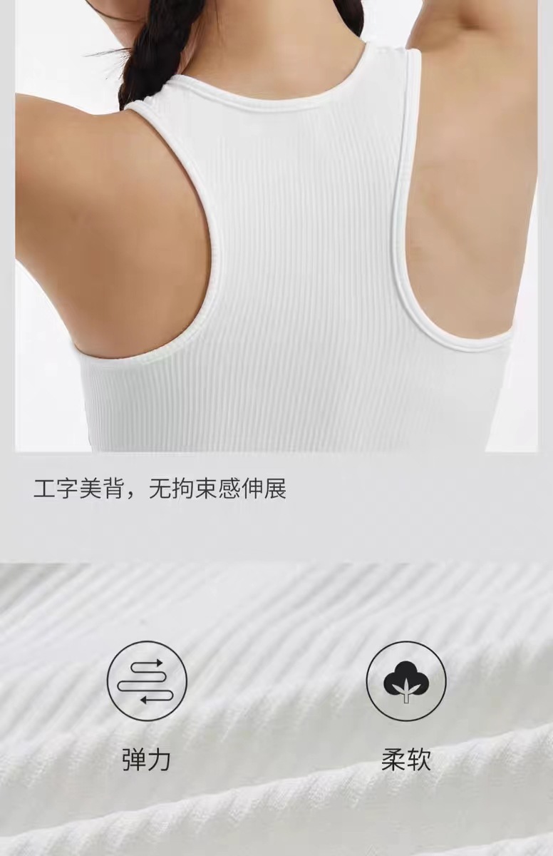 유럽과 미국의 새로운 스레드 가슴 패드 피트니스 여성용 민소매 밑단 불규칙한 고탄성 충격 흡수 스포츠 요가 의류스토어 가기