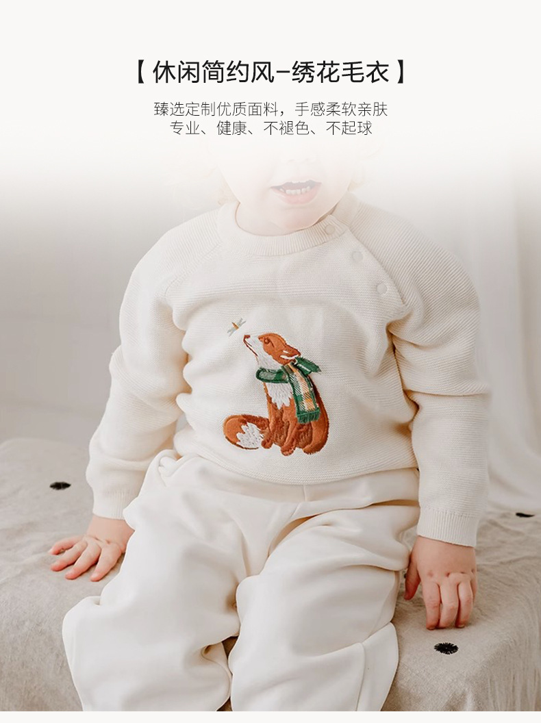 2024 유럽 및 미국 가을 신상 유아 동물 입체 자수 니트 상의 따뜻한 아기 풀오버 스웨터