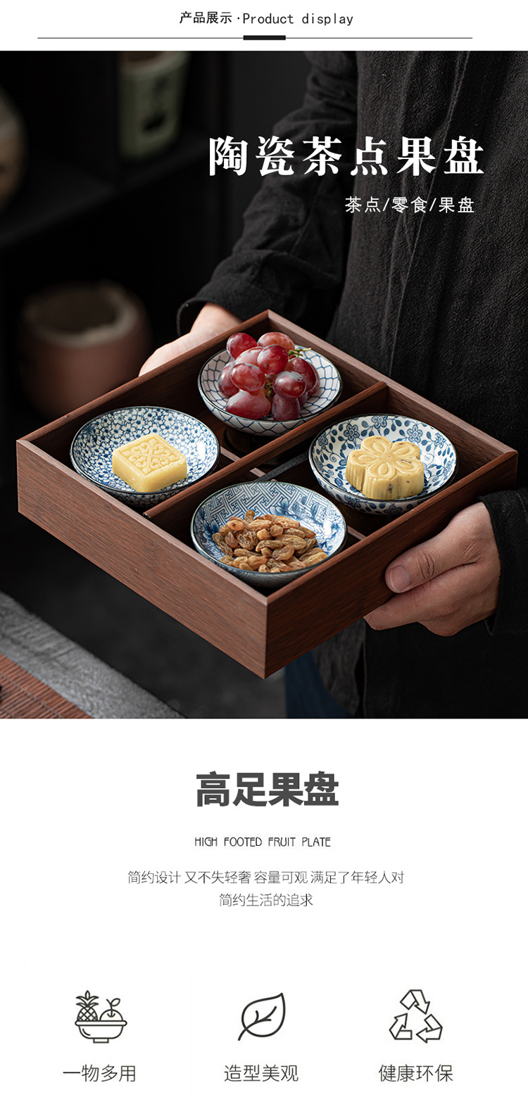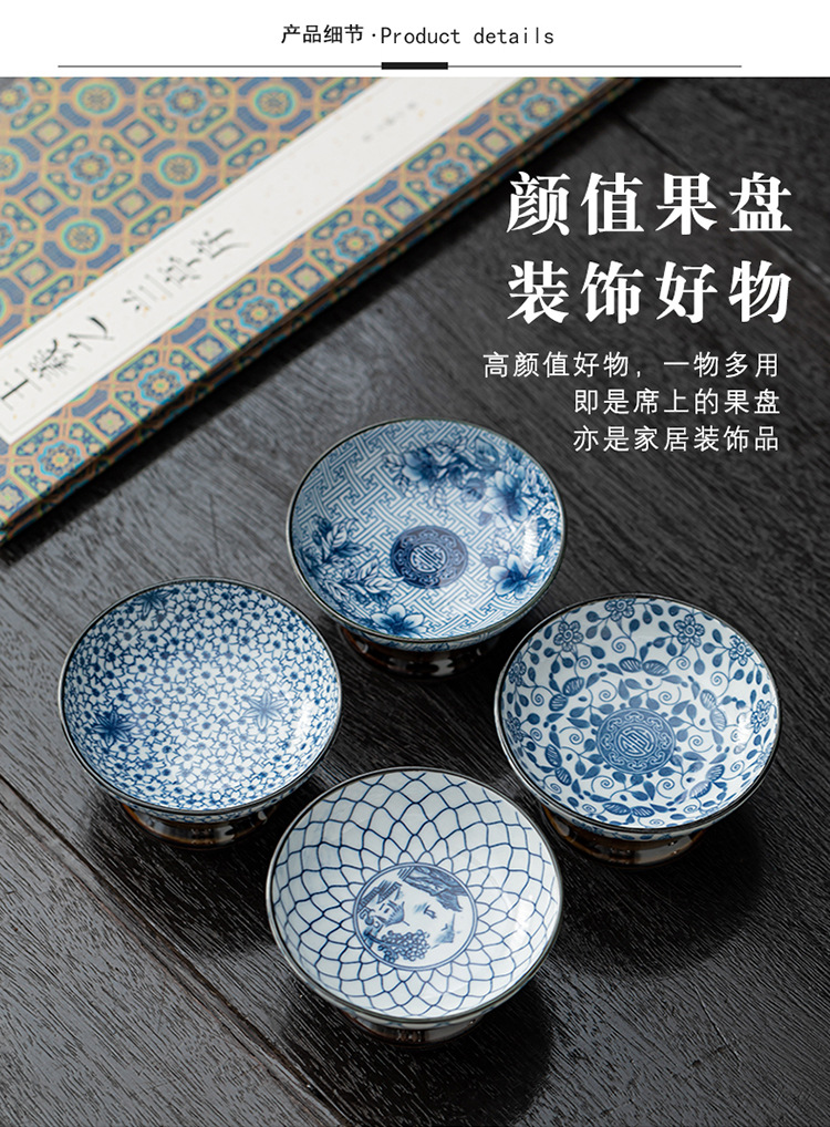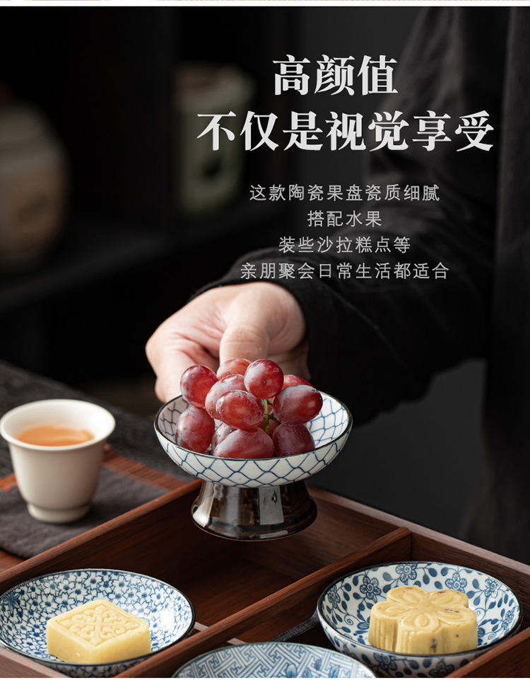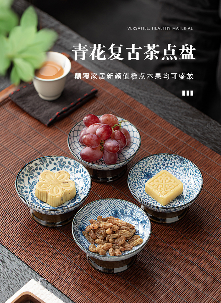 세라믹 아이스 다과 접시 간단한 높은 다리 스몰 사이즈 말린 과일 접시 살라 그릇 홈 스낵 접시 다도 액세서리 Jiugongge스토어 가기