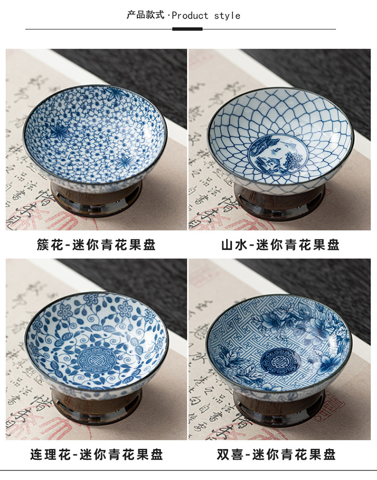 • Lianli 꽃-미니 파란색과 흰색 과일 접시