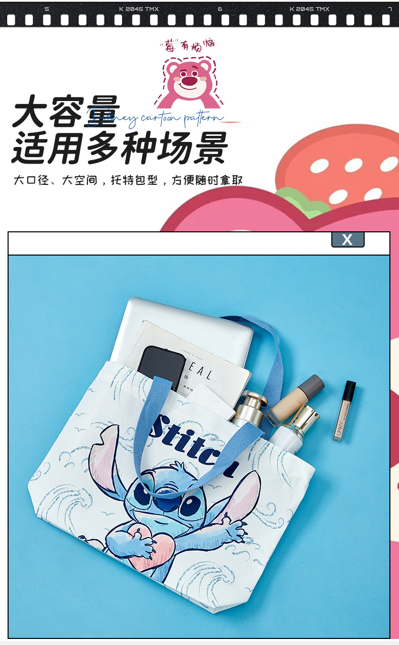 디즈니 만화 캔버스 가방 대용량 지퍼가 달린 캔버스 토트백 딸기 곰 귀여운 학생 숄더백스토어 가기