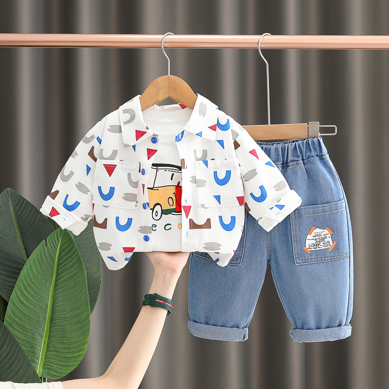 0 ~ 5 세 아기 잘 생긴 소년 가을 세트 카 캐주얼 긴 소매 셔츠 재킷 청바지 쓰리 피스 세트스토어 가기