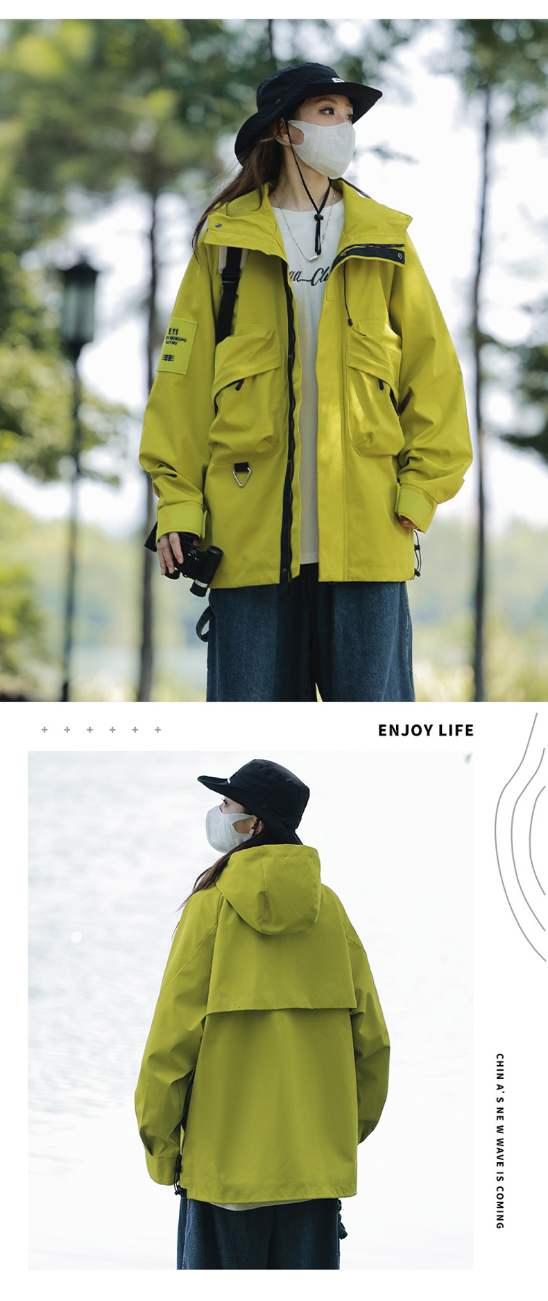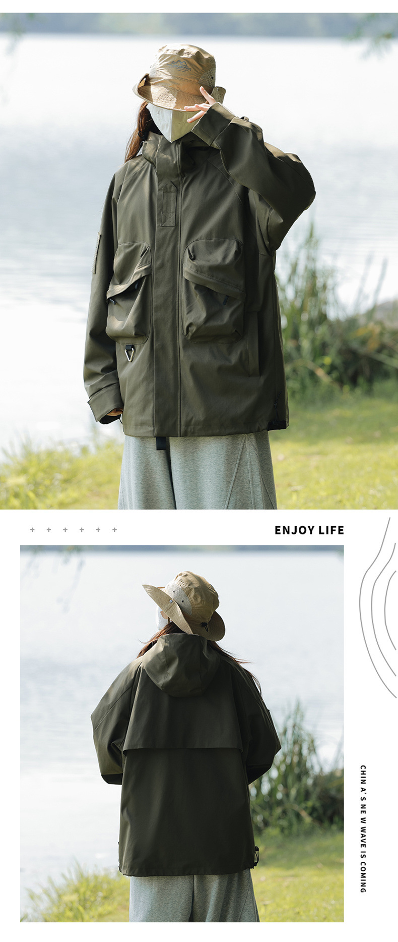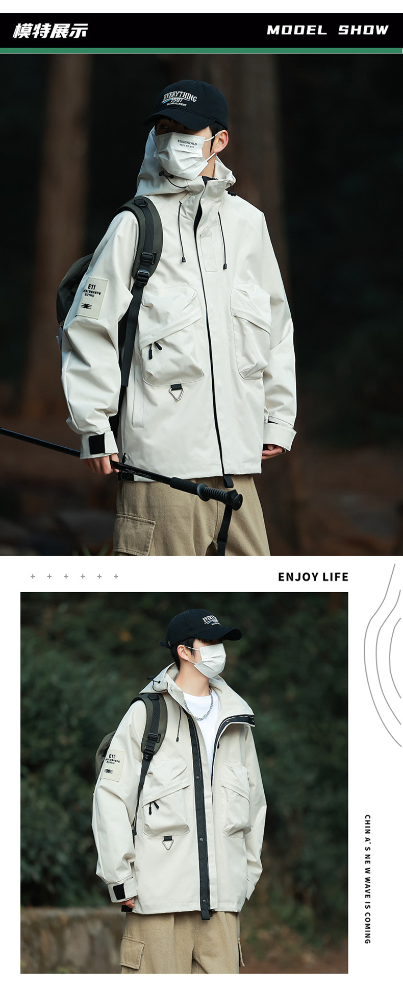 재킷 남자의 야외 작업복 스타일 러쉬 재킷 코트 남자와 여자의 후드 유행 브랜드 일본 모든 일치 산 낚시 세트
