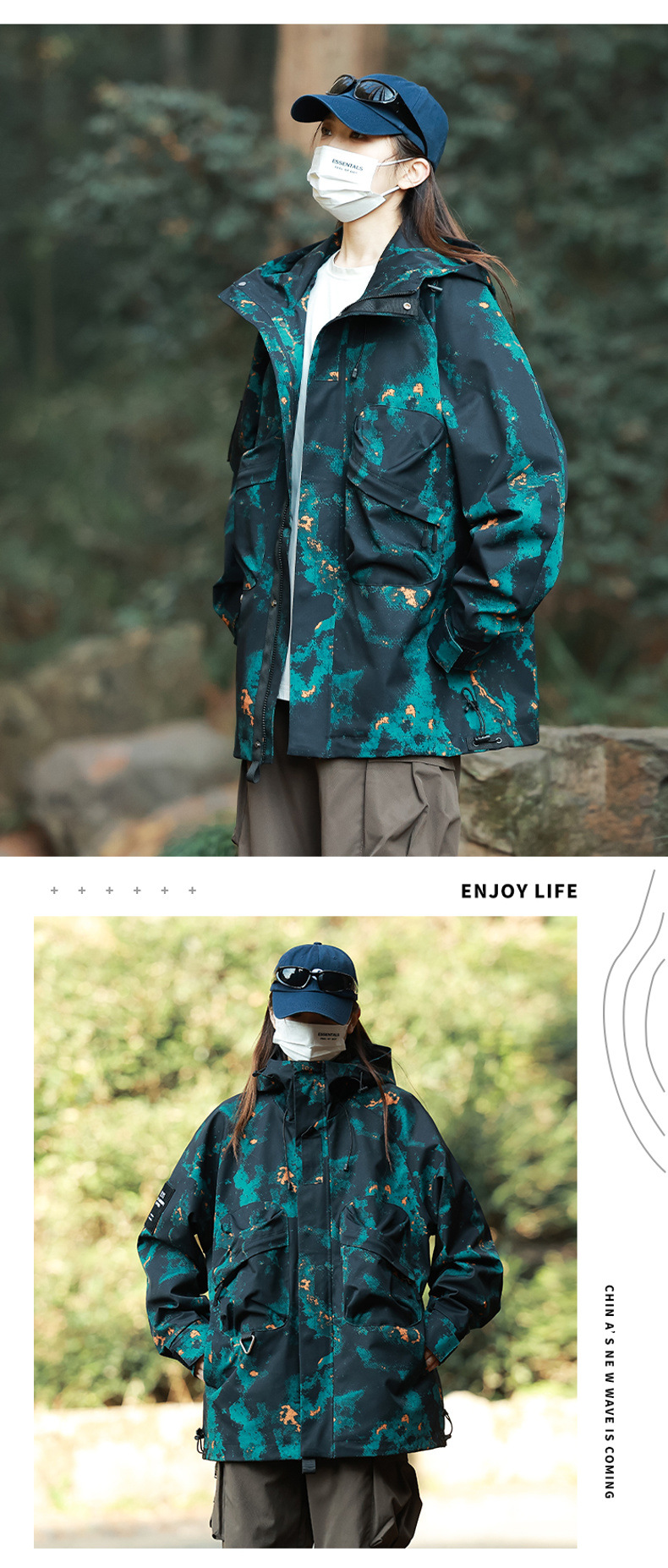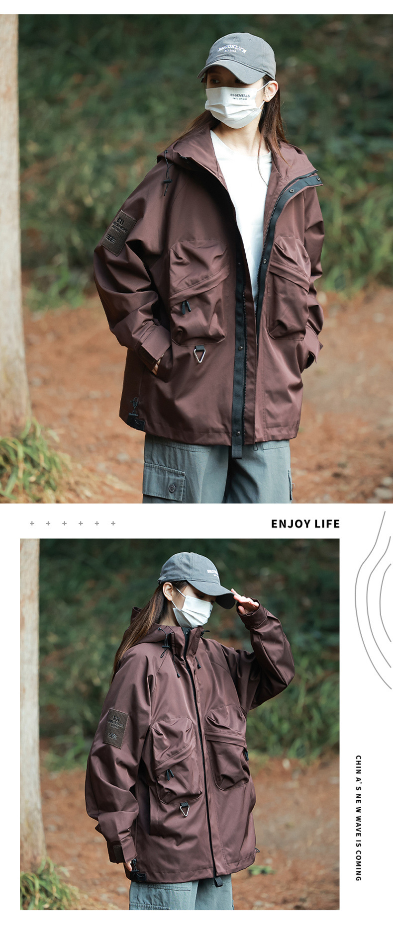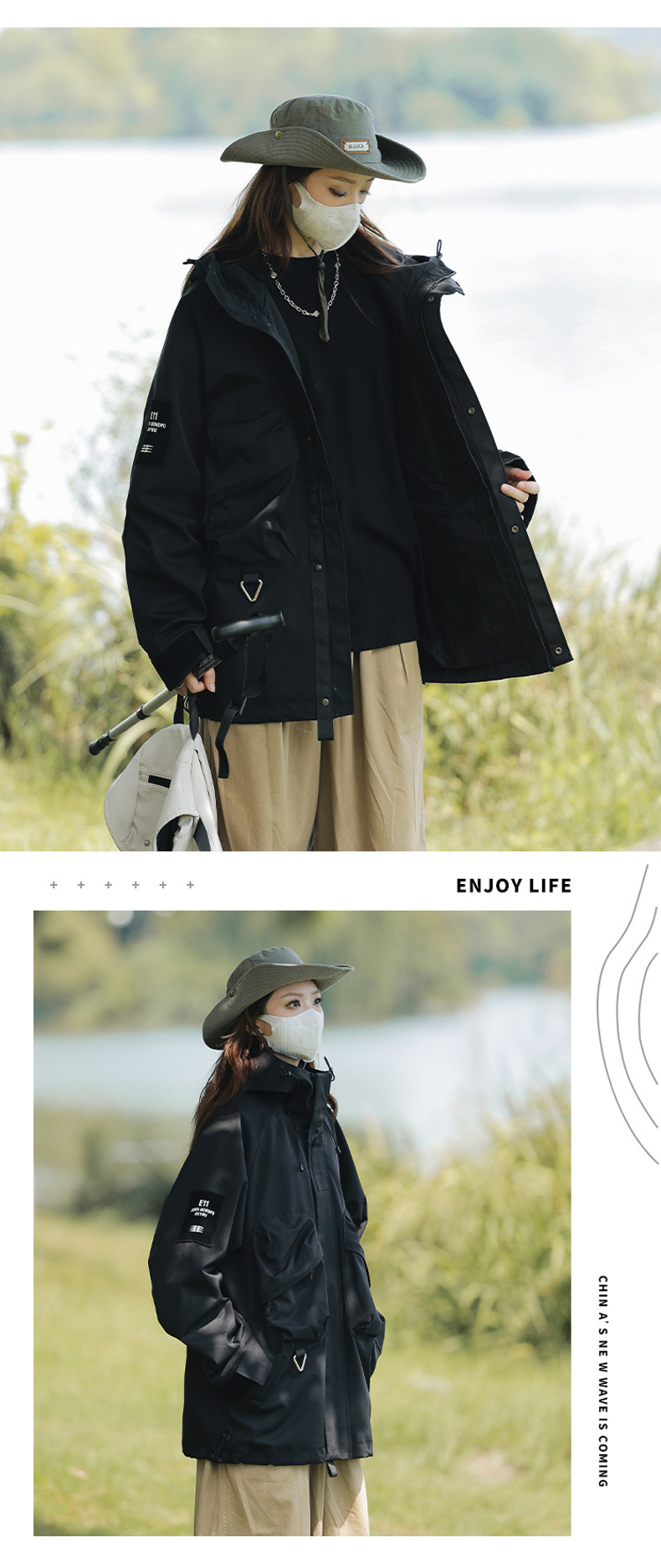 재킷 남자의 야외 작업복 스타일 러쉬 재킷 코트 남자와 여자의 후드 유행 브랜드 일본 모든 일치 산 낚시 세트