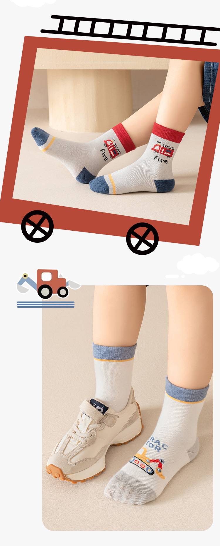 어린이 양말 만화 굴삭기 패턴 소년 봄과 가을 새로운 어린이 양말 아기 양말 유행 어린이 양말
