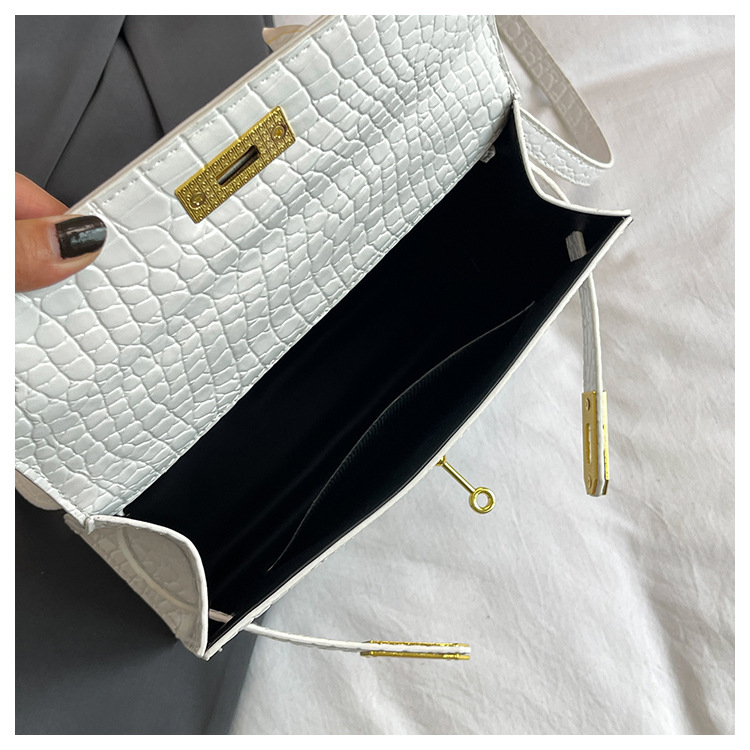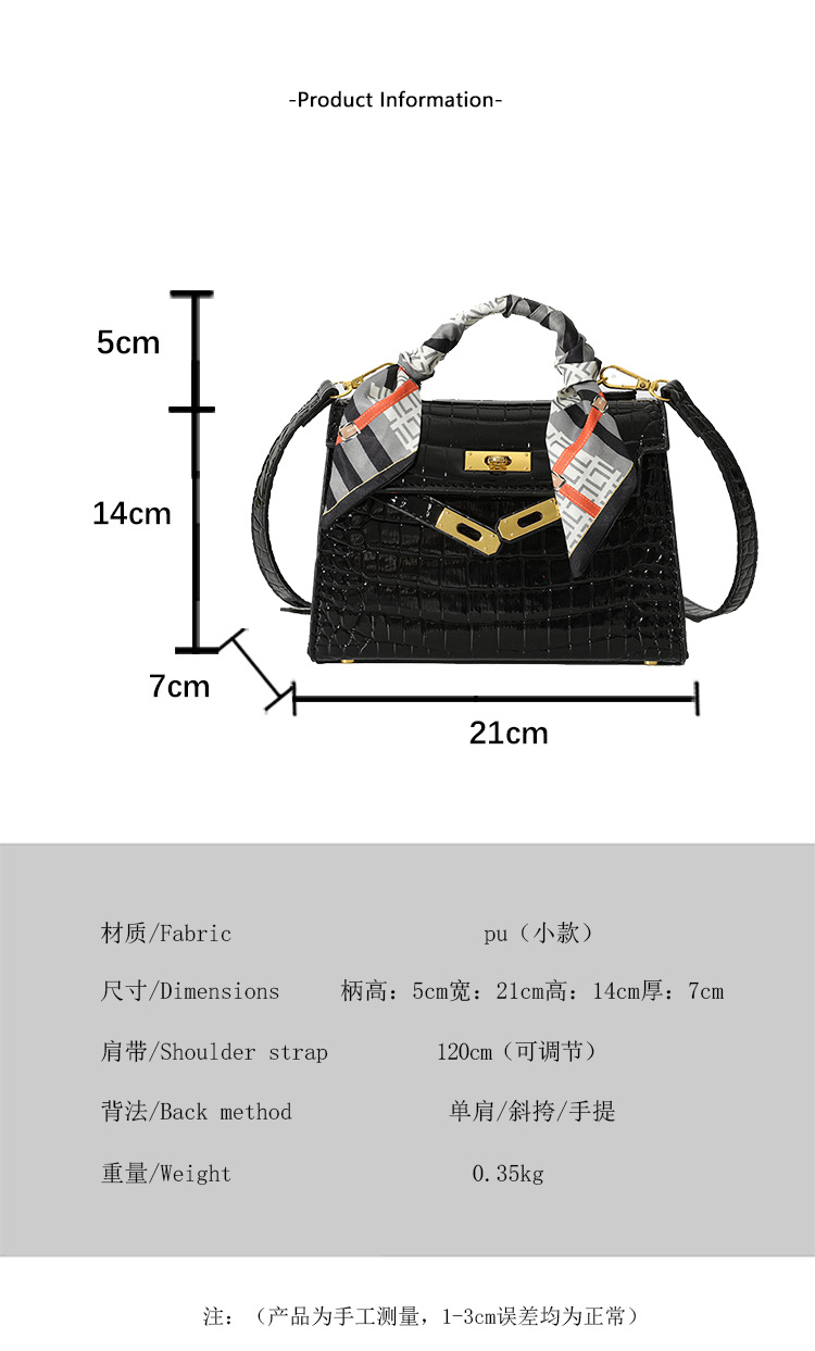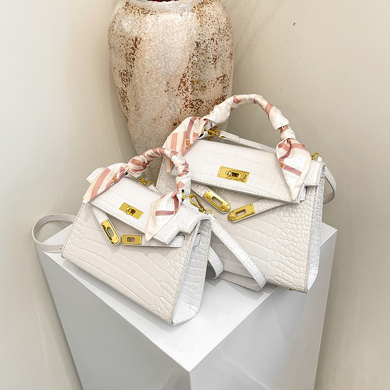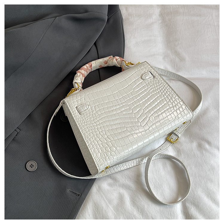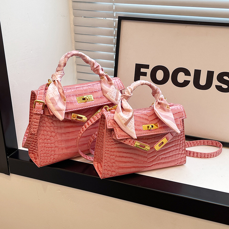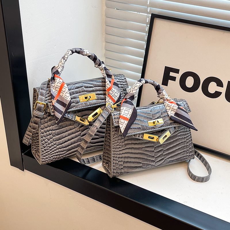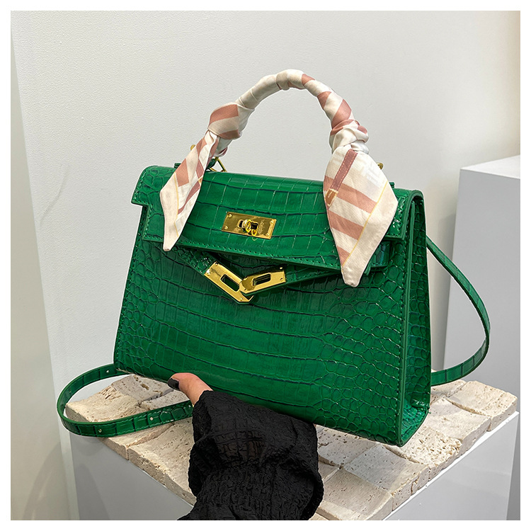 크로스보더 신상 켈리백, 다양한 사이즈, 광택 있는 패셔너블한 악어 무늬, 고급스러운 느낌, 아마존 인기 상품, 실크 스카프 핸드백