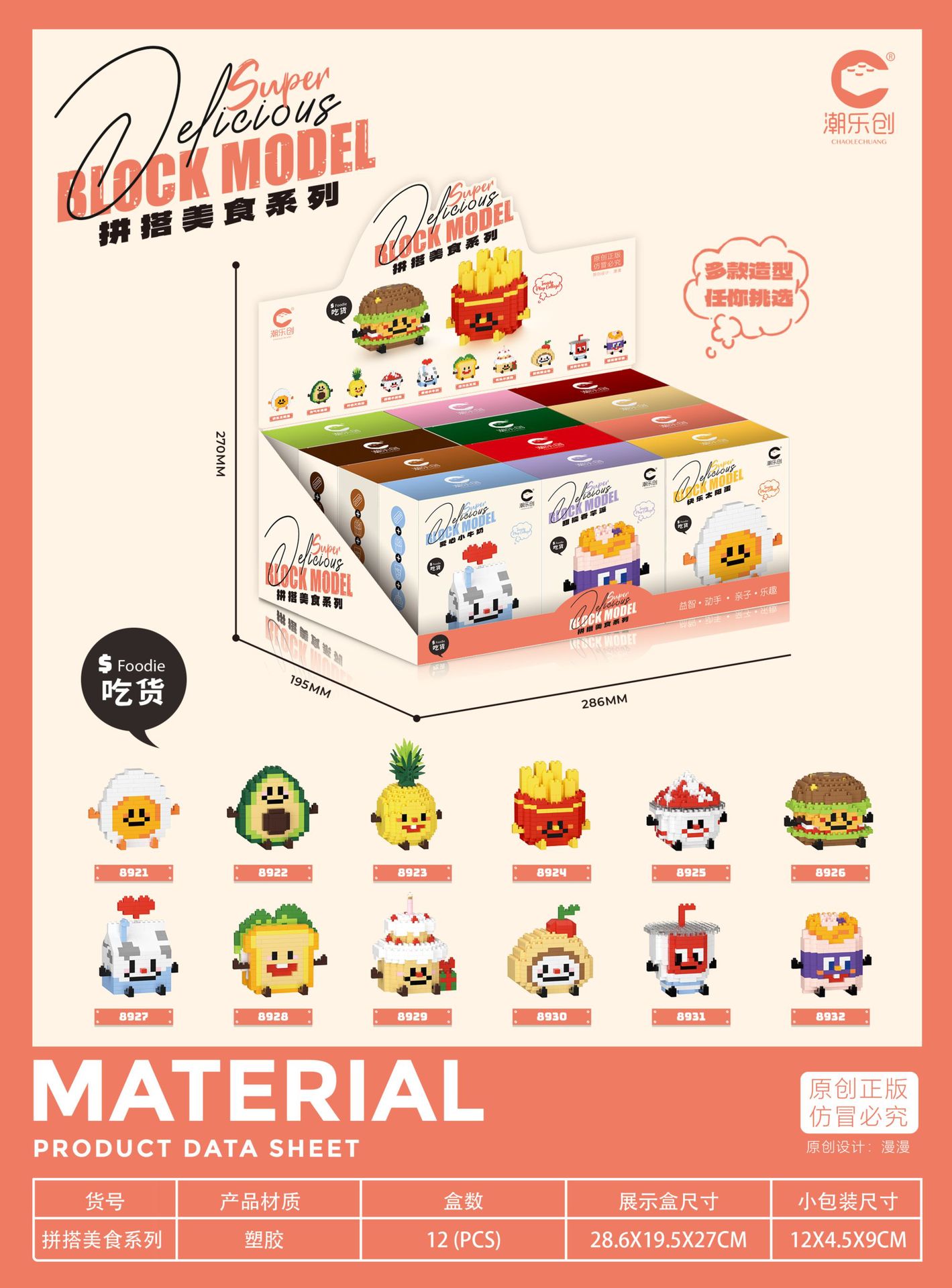Chao Le Chuang 마이크로 입자 레저 플러그인 빌딩 블록 완구 8921-8932 행복한 음식 놀이 시리즈 도매스토어 가기