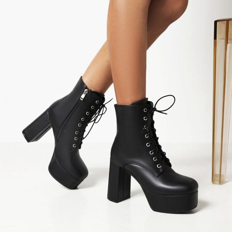 대외 무역 23 가을과 겨울 새로운 짧은 부츠 방수 플랫폼 두꺼운 뒤꿈치 미드 배럴 레이스 업 마틴 부츠 하이힐 여성 부츠 플러스 사이즈