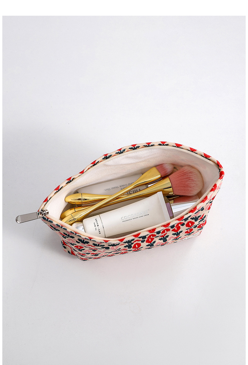 새로운 레트로 플로럴 코듀로이 화장품 가방 휴대용 립스틱 파우치 대용량 여행용 수납 가방