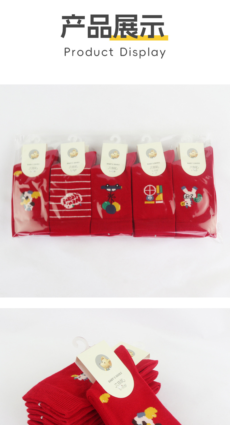 6 손가락 마우스 어린이 양말 도매 23 가을과 겨울 두꺼운 빗질면 중형 및 대형 어린이 스포츠 양말 스타킹 튜브 두꺼운면스토어 가기